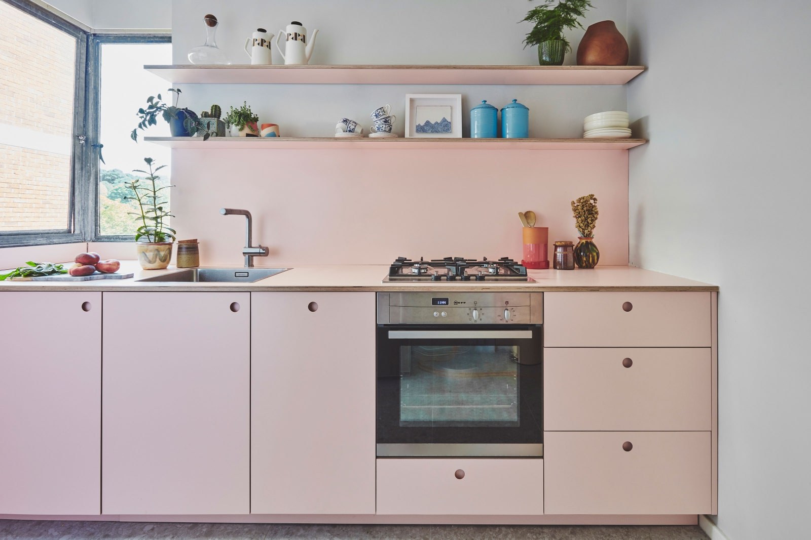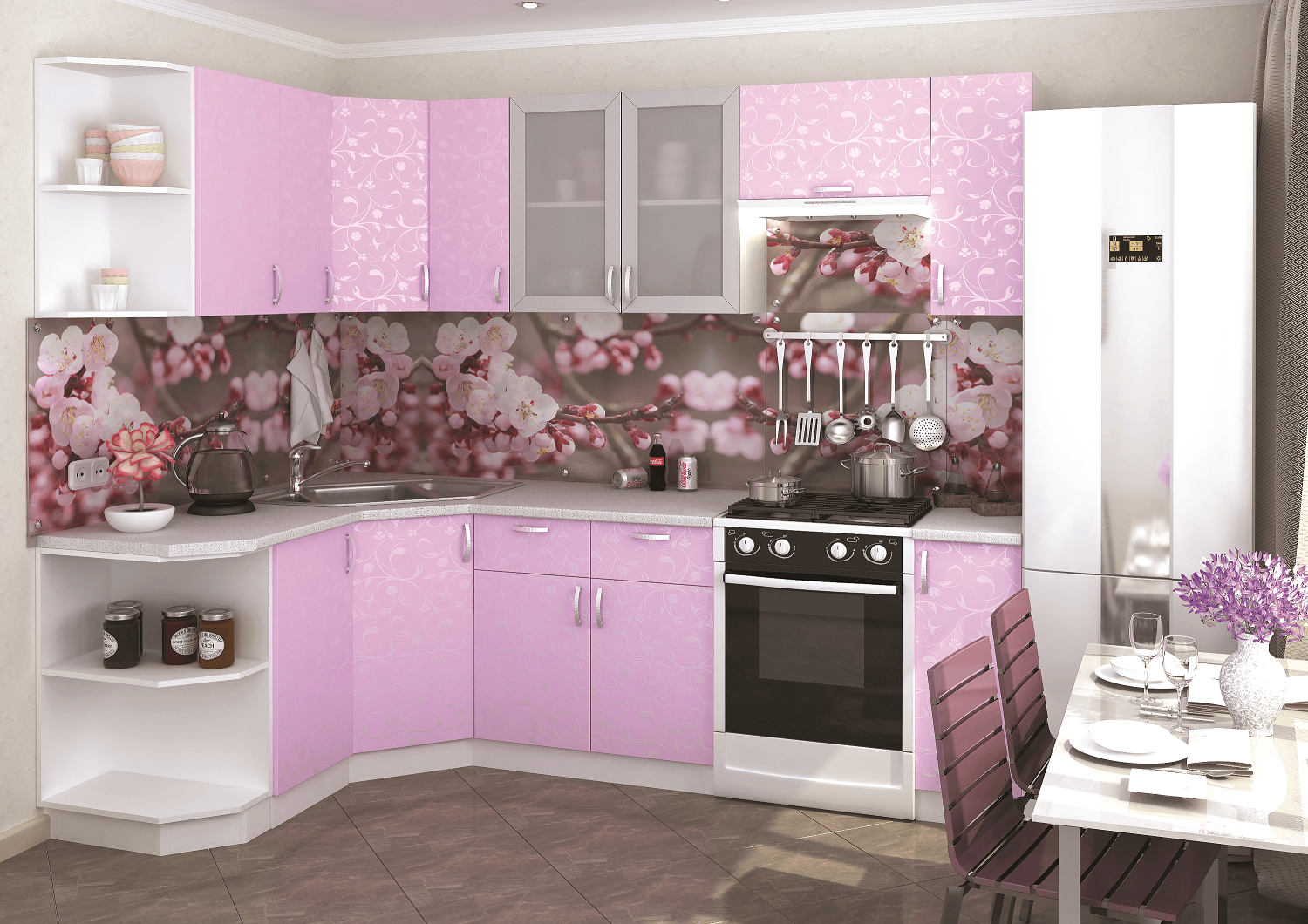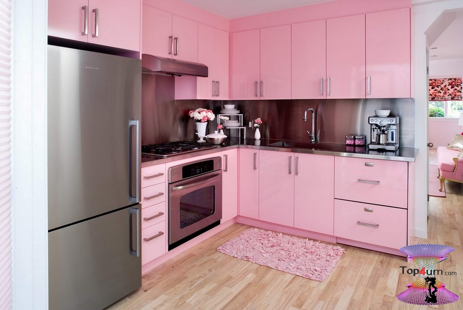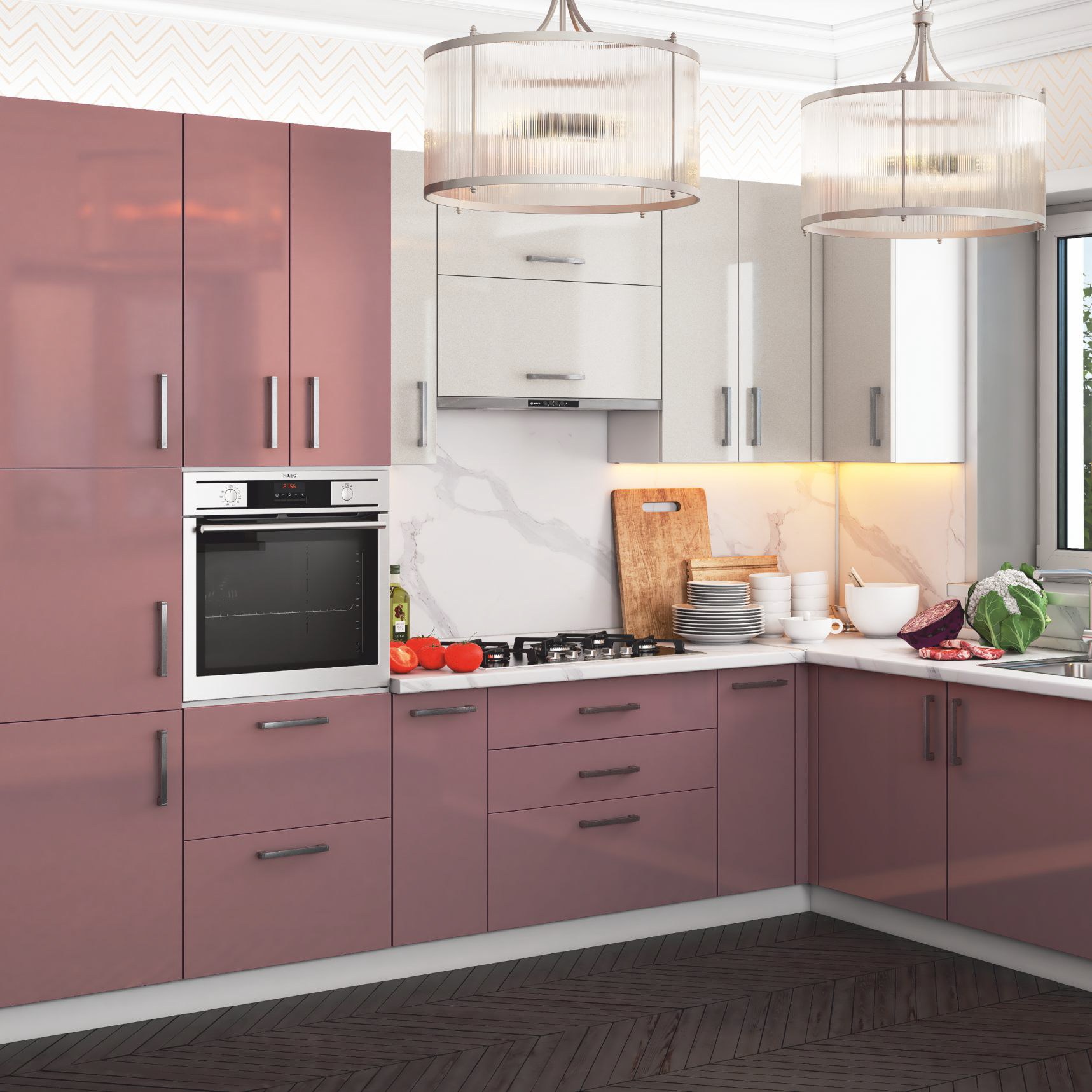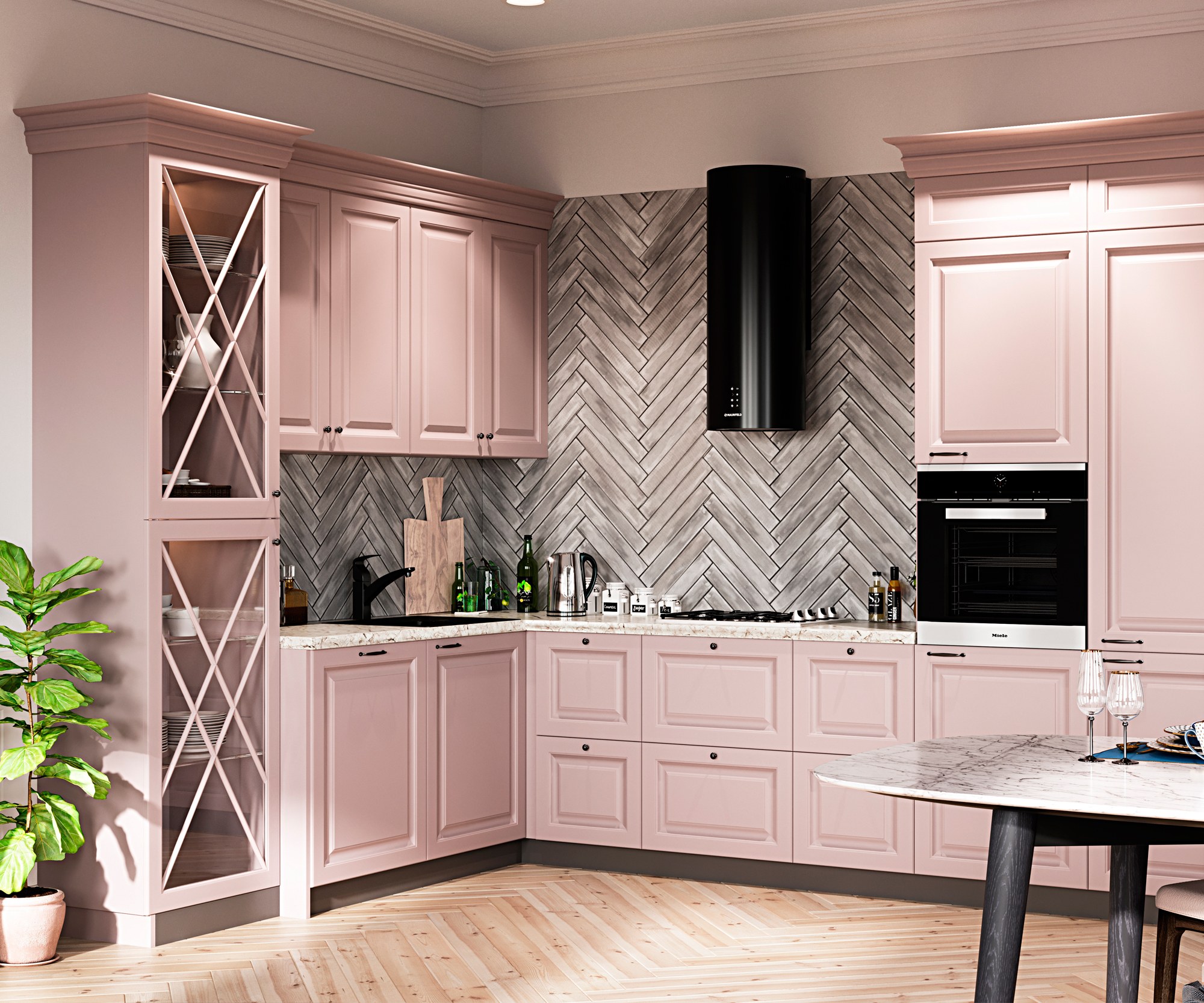 Кухонные гарнитуры в цвете пыльная роза угловые в интерьере (35 фото)