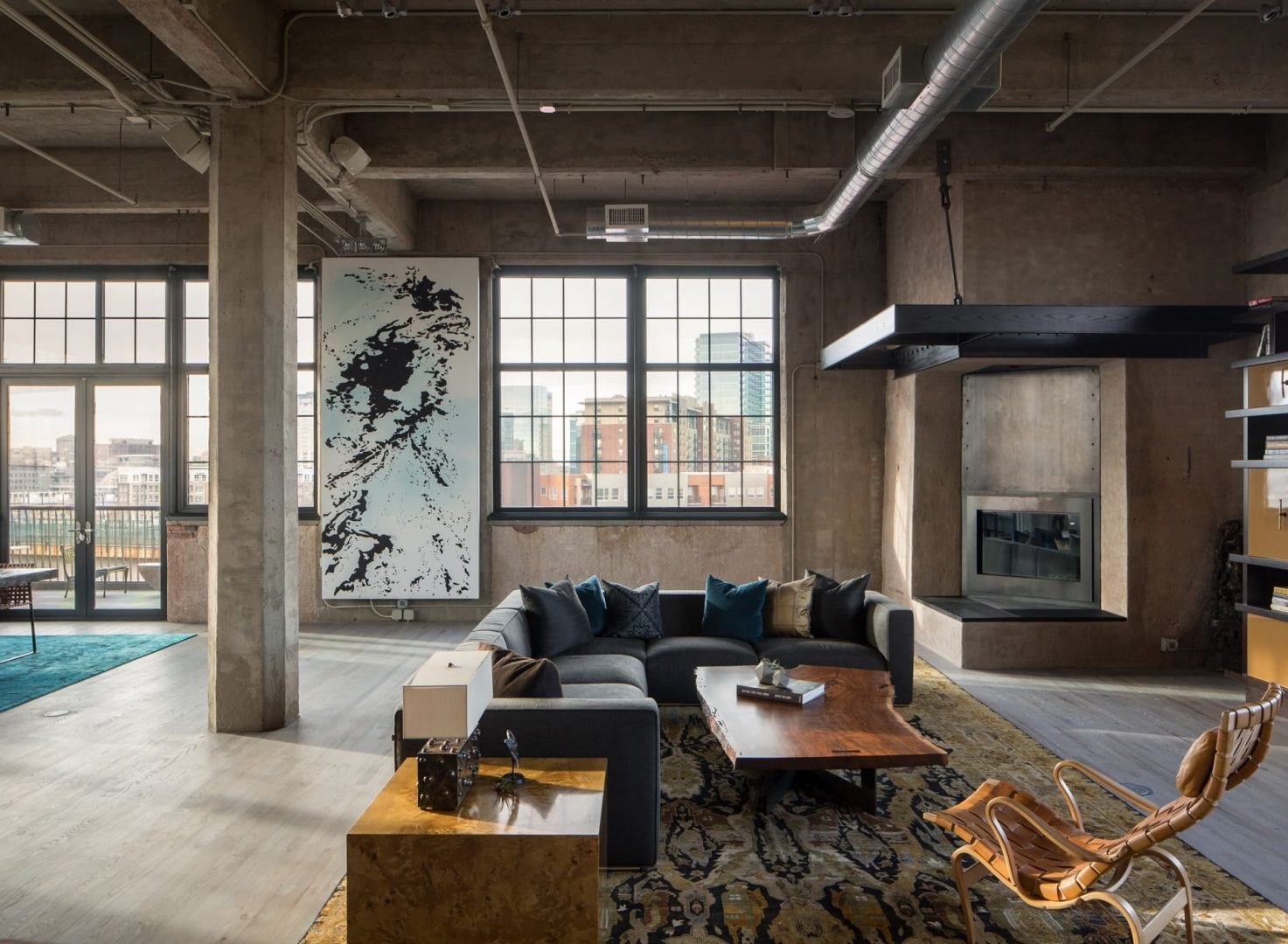 Палас лофт в интерьере гостиной