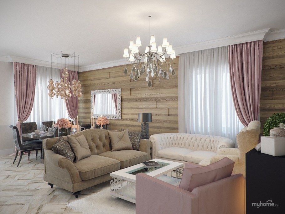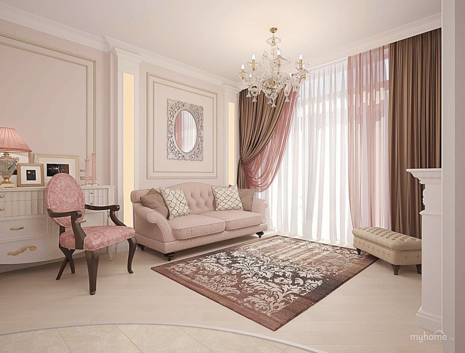 Кухня гостинная арт деко в нежно пудровом цвете современная классика