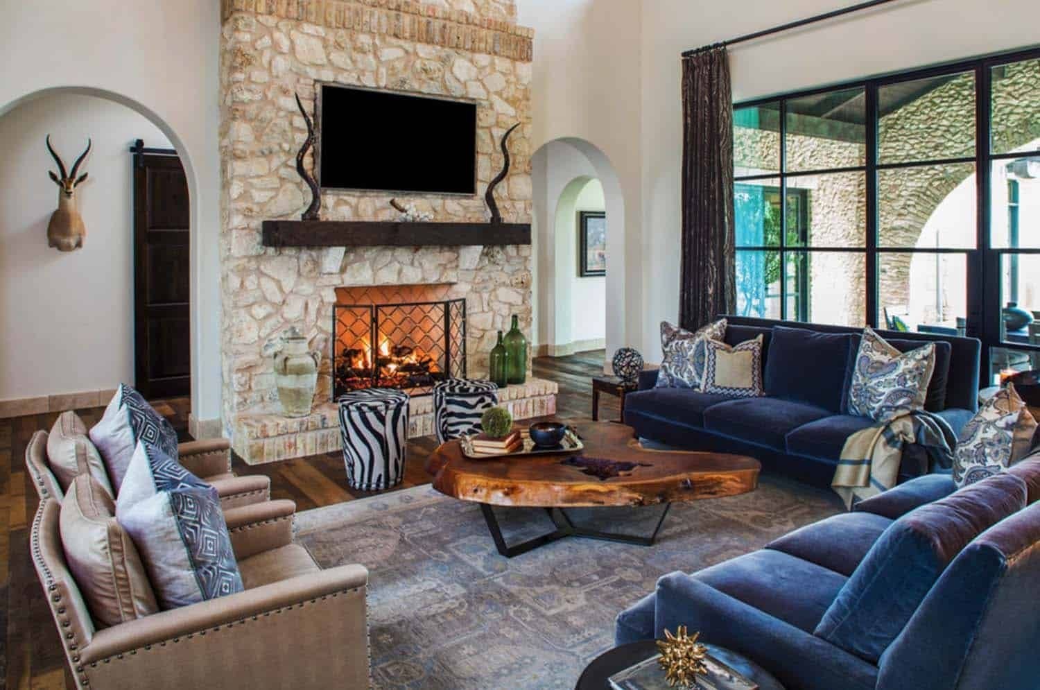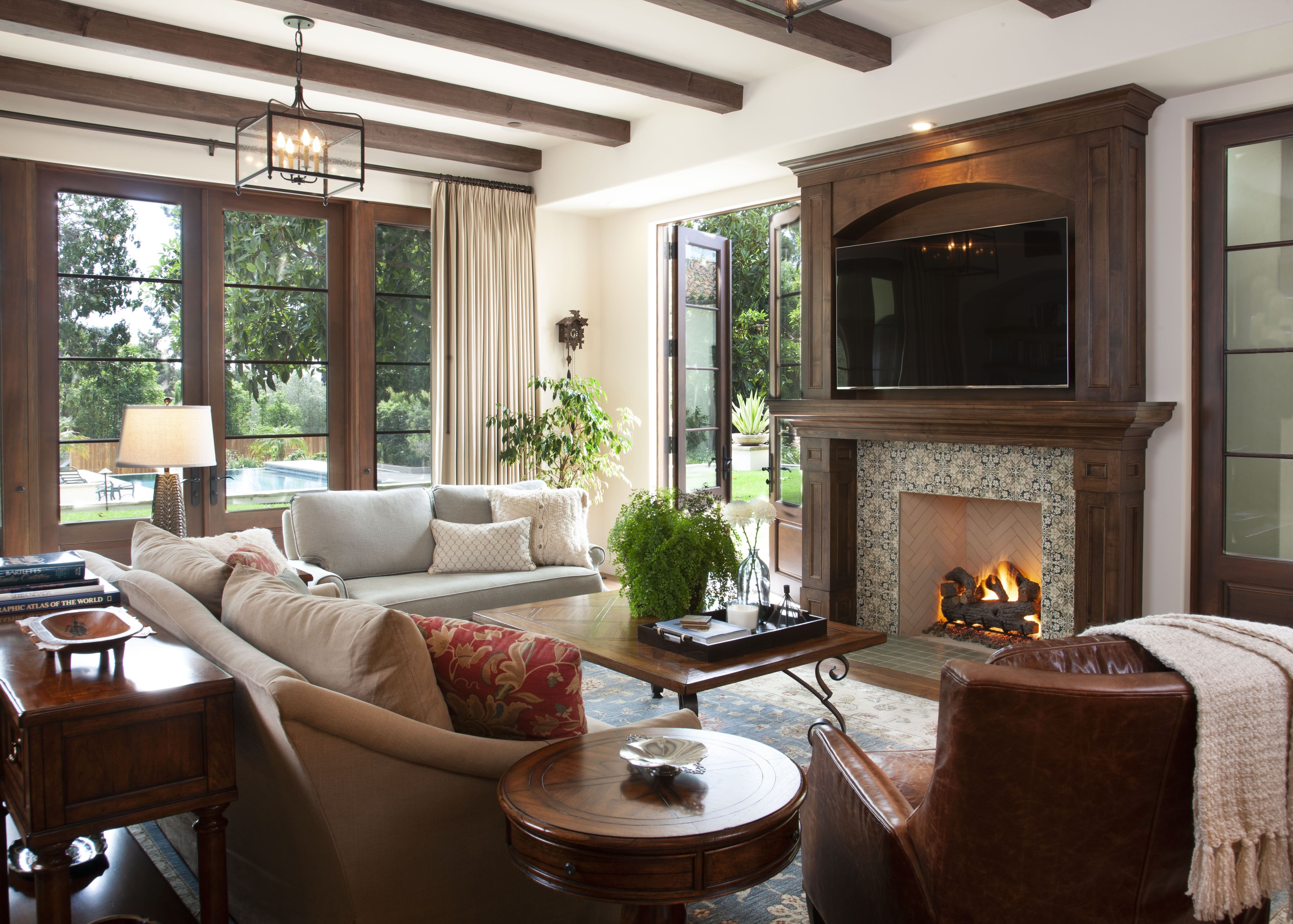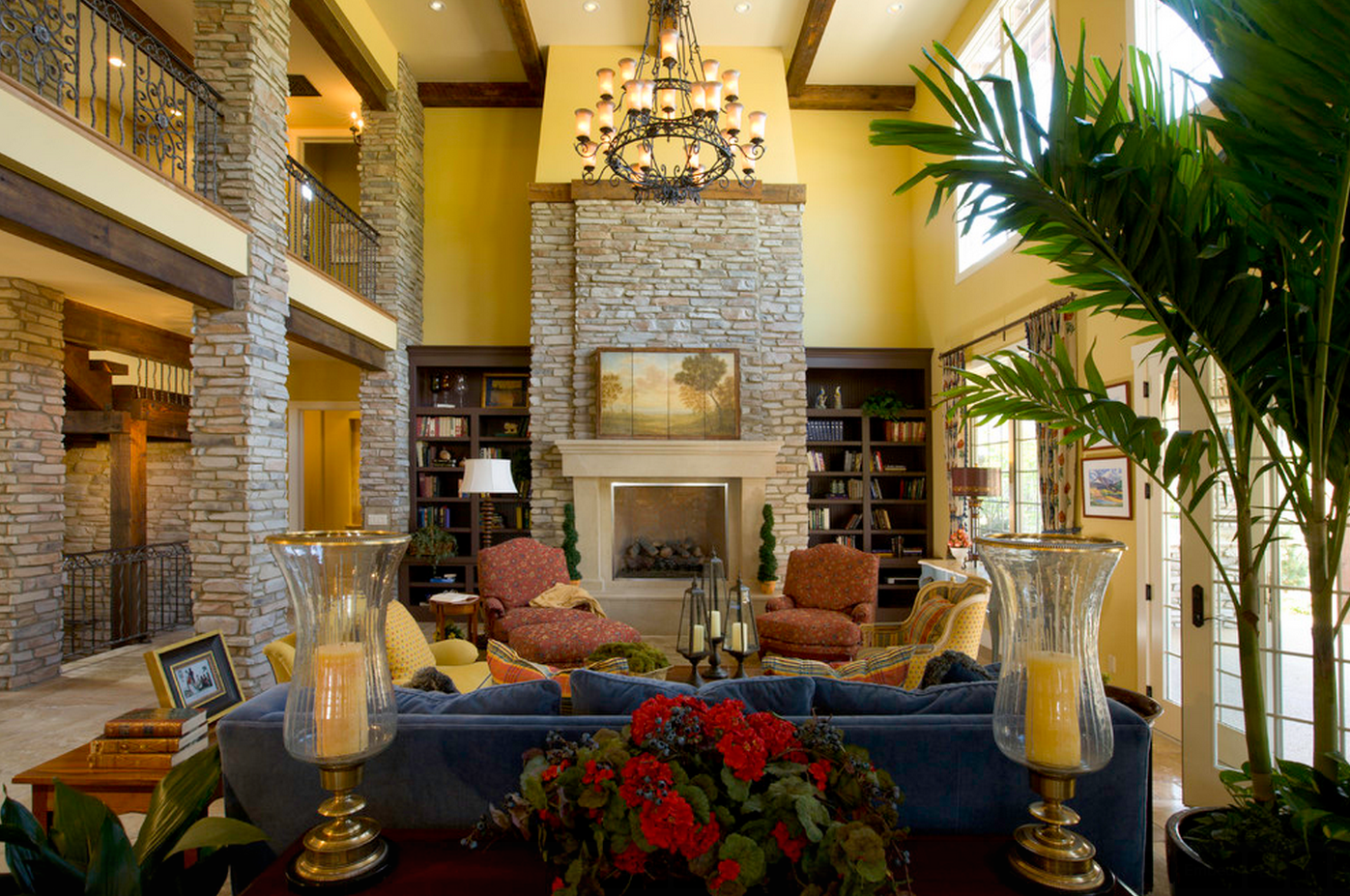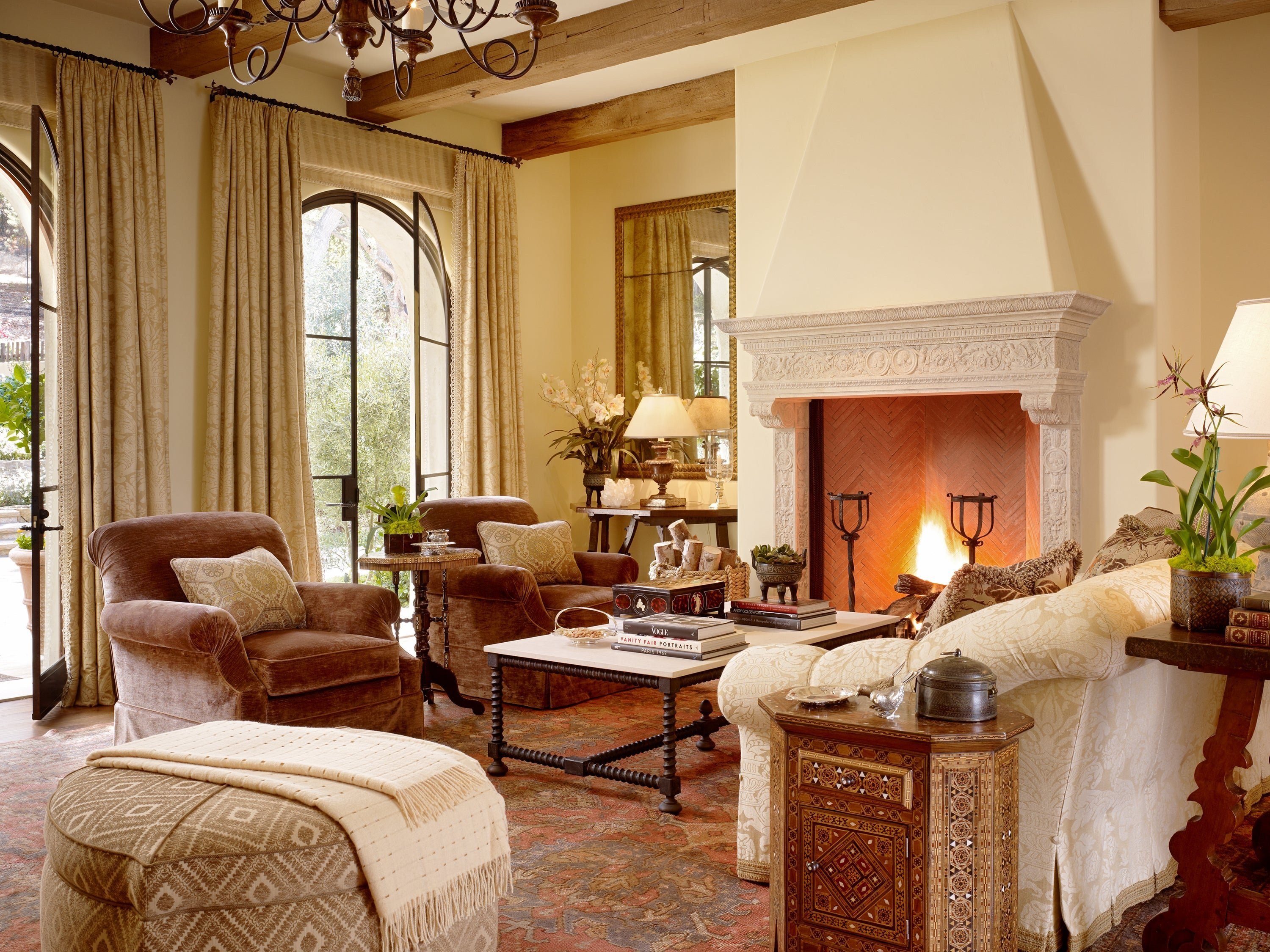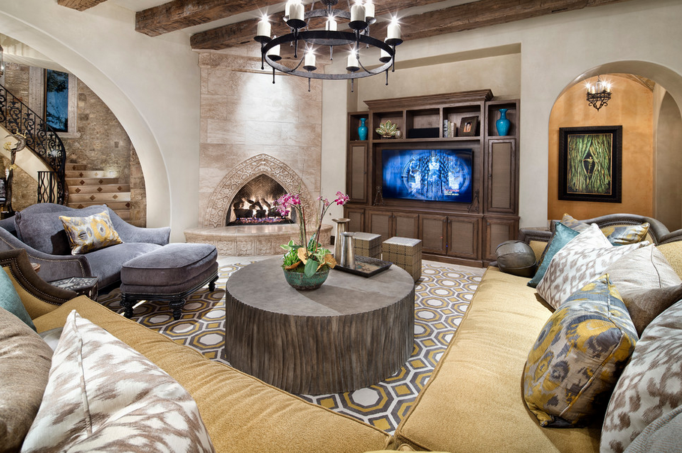 Гостиные в домах с камином средиземноморском стиле дизайн интерьера