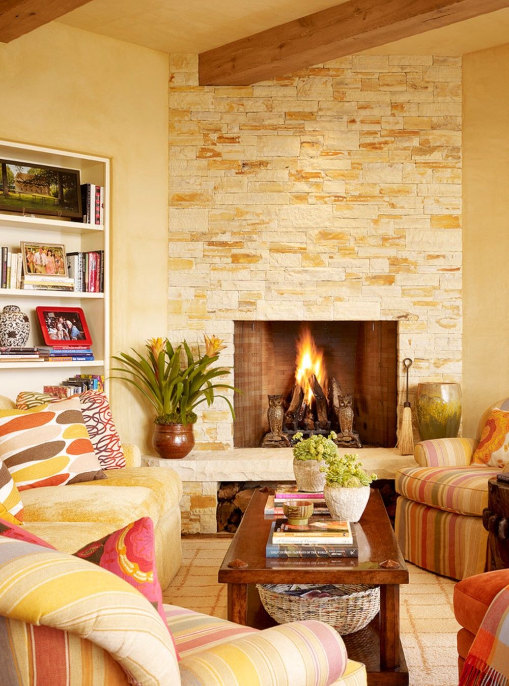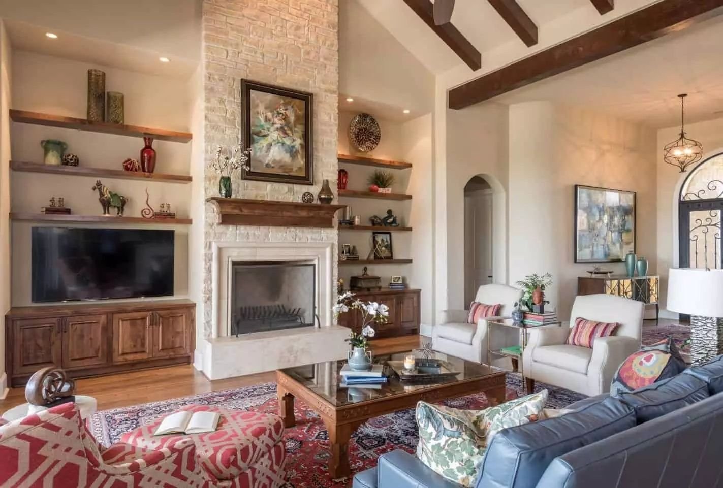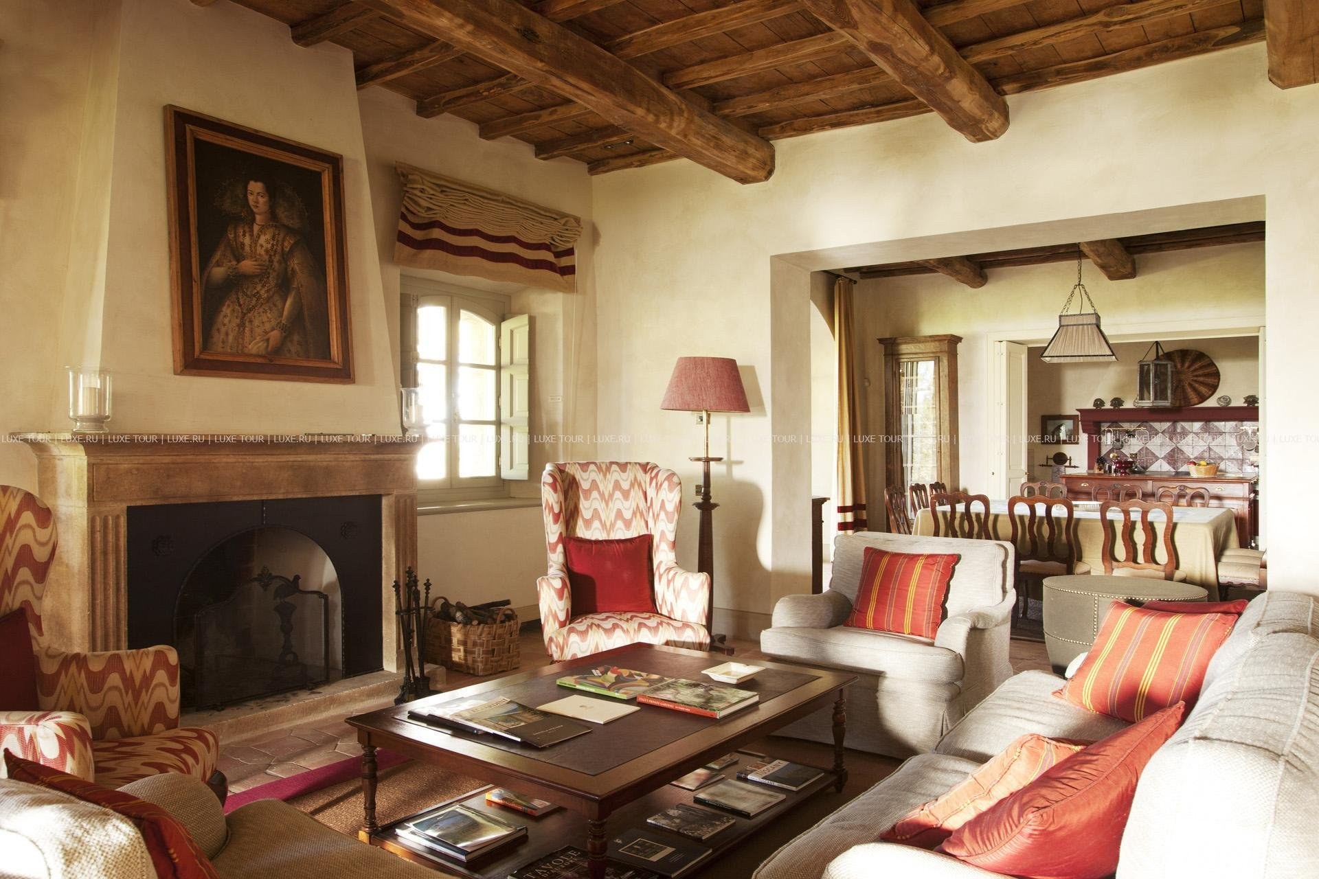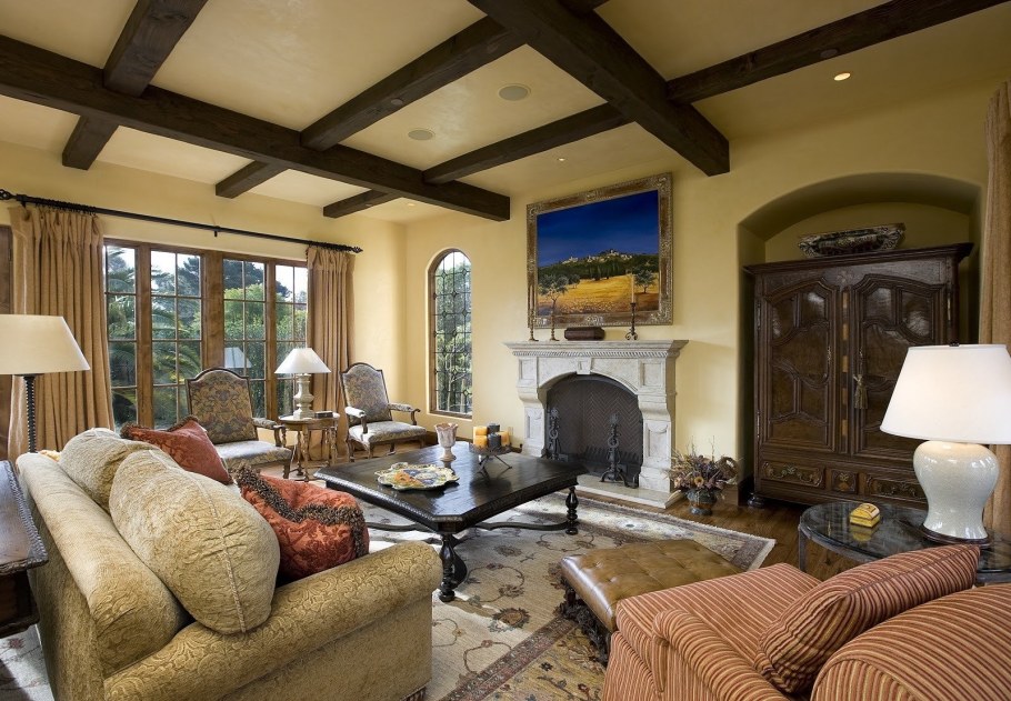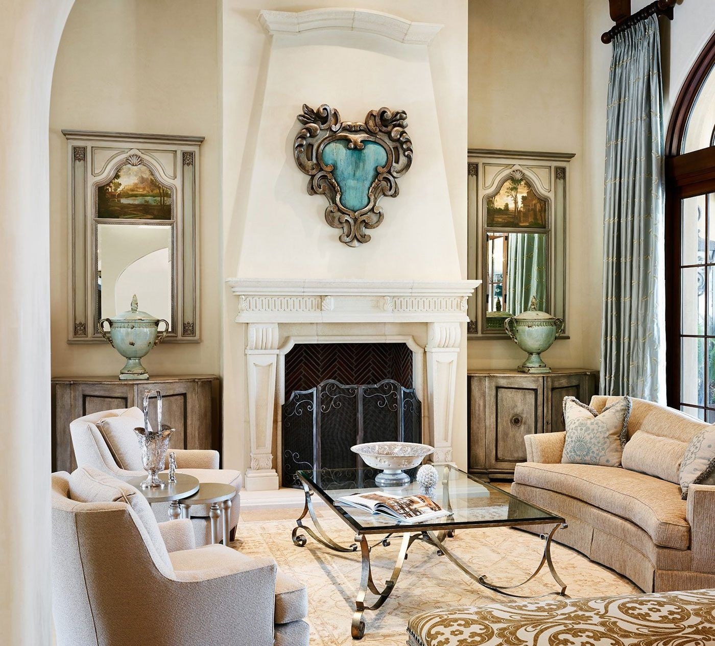 Гостиные в домах с камином средиземноморском стиле дизайн интерьера