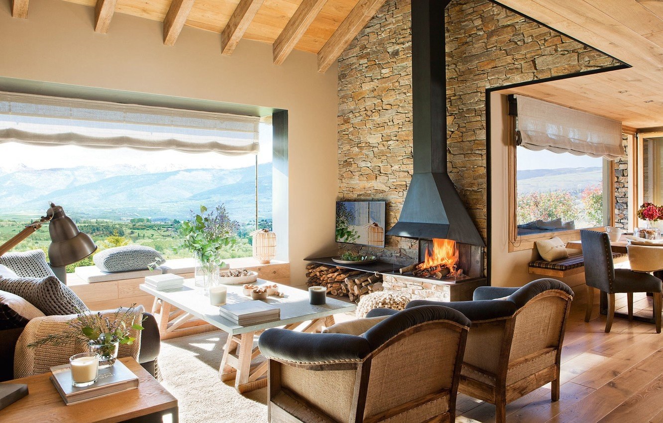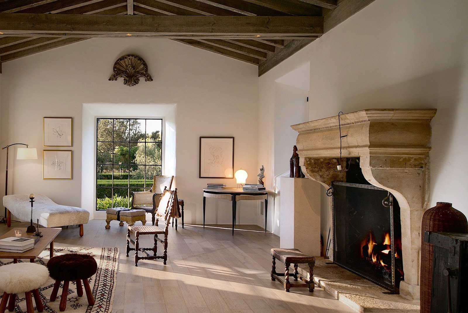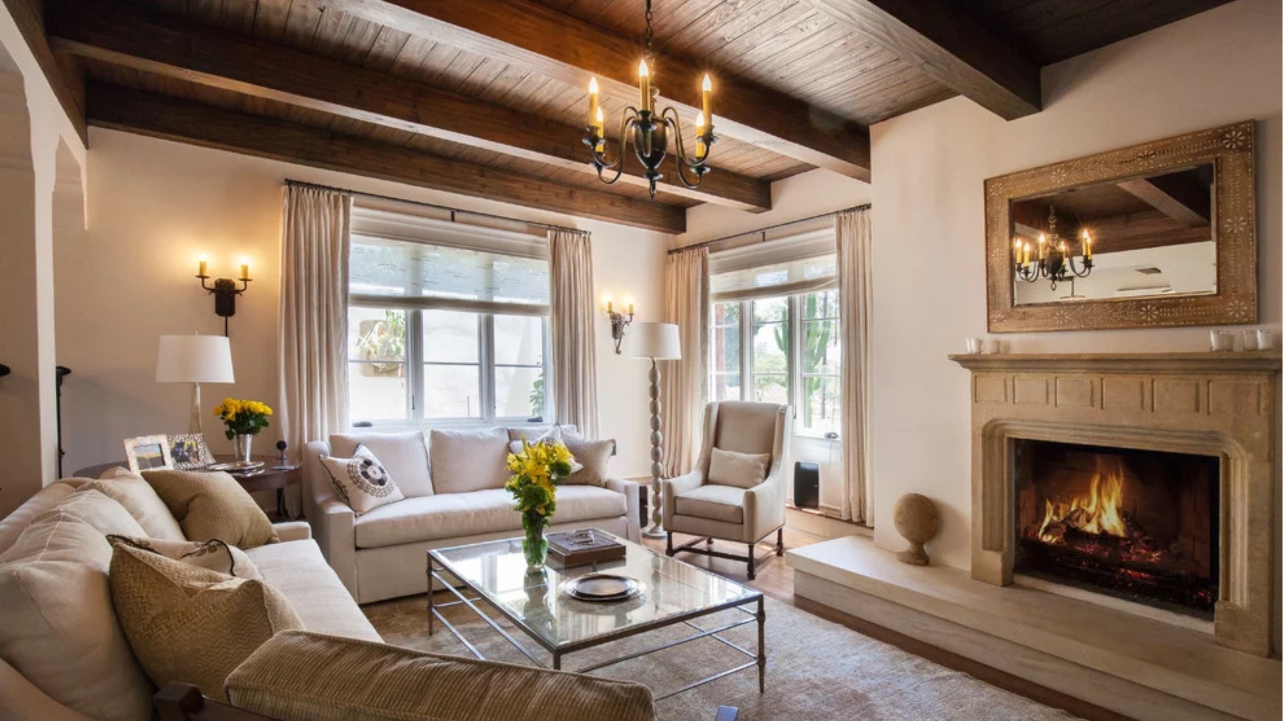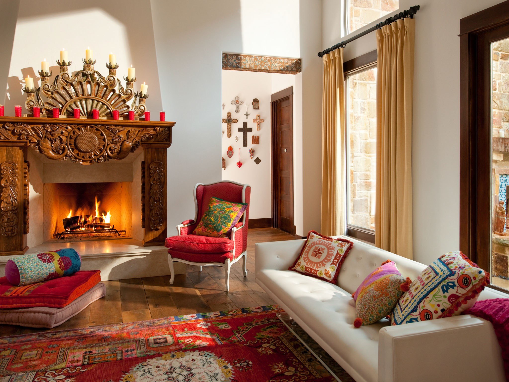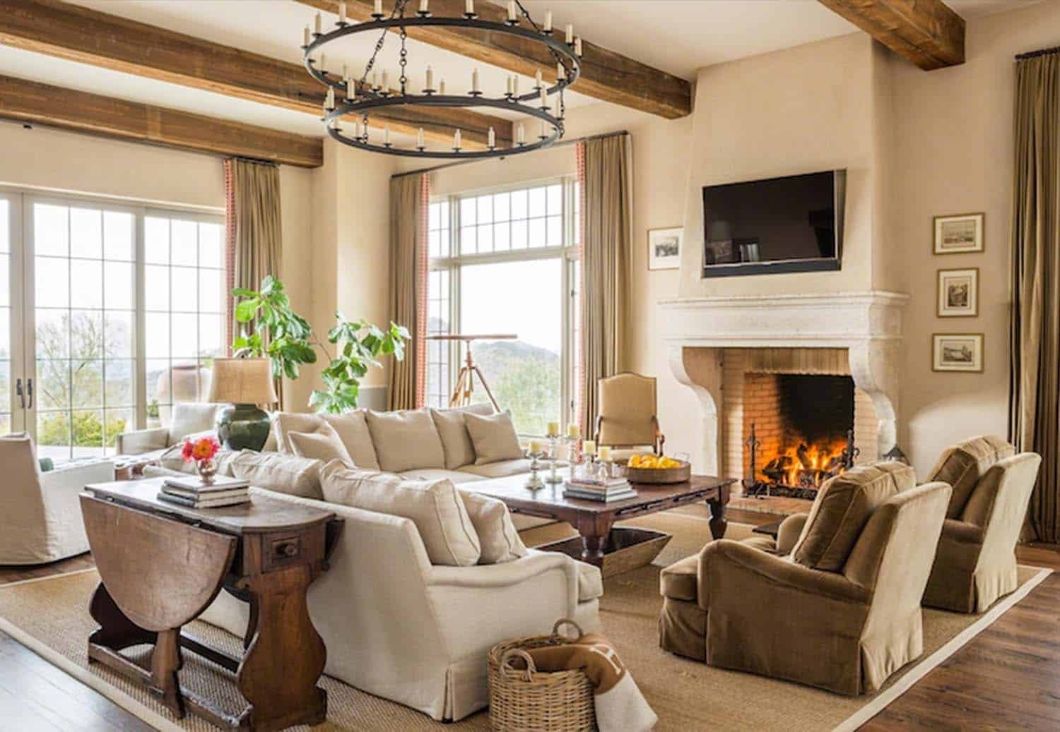 Гостиные в домах с камином средиземноморском стиле дизайн интерьера