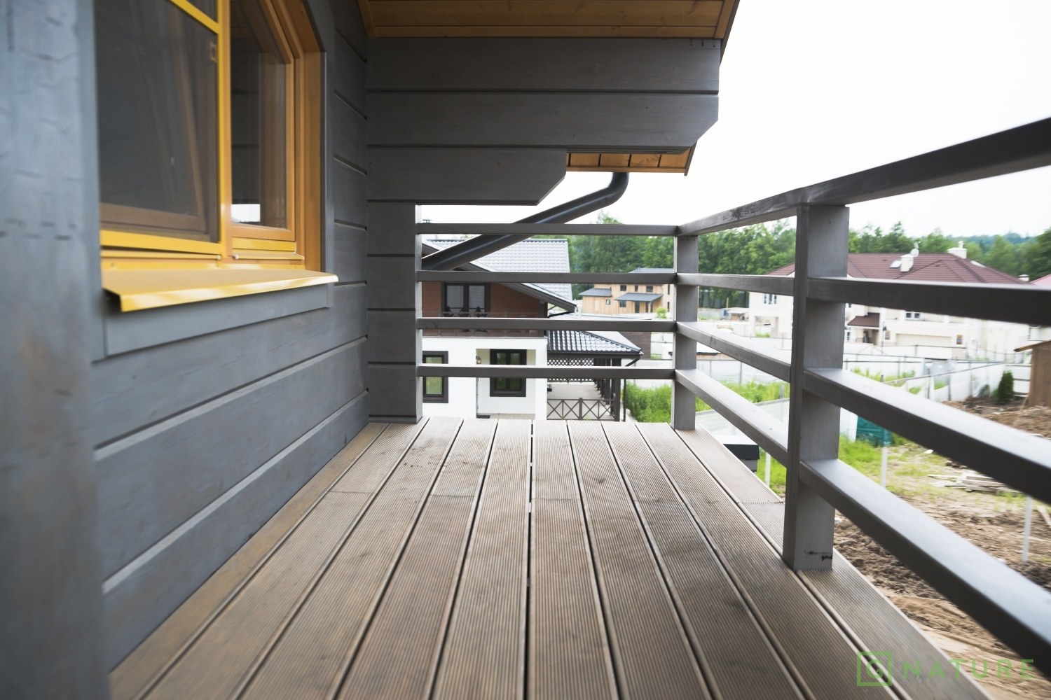 Террасная доска в современном загородном доме жёлтое черном