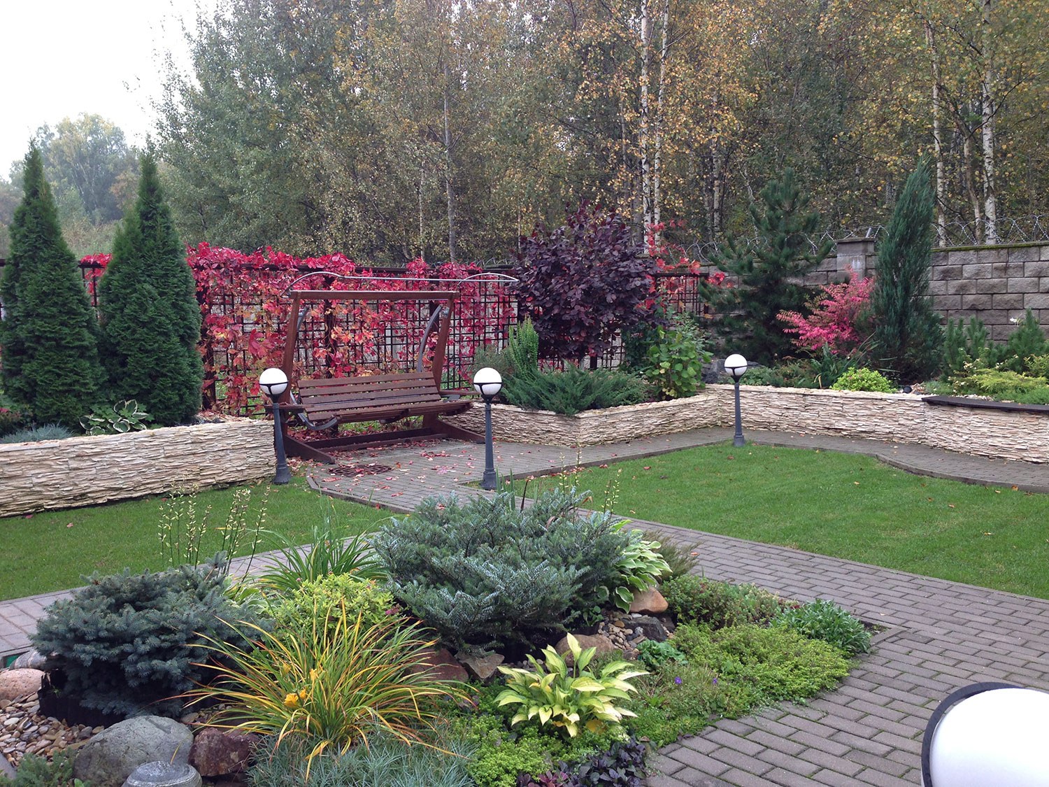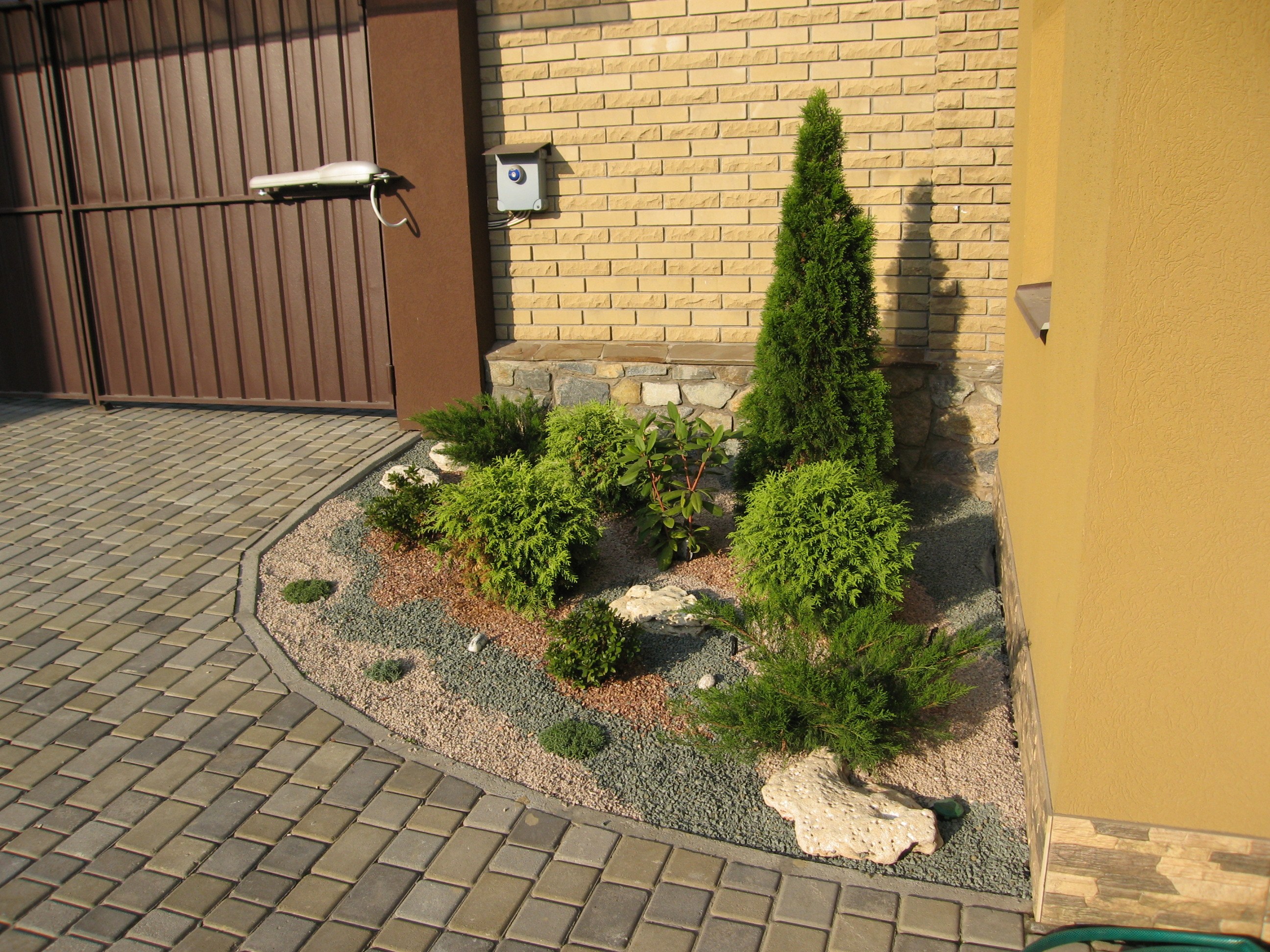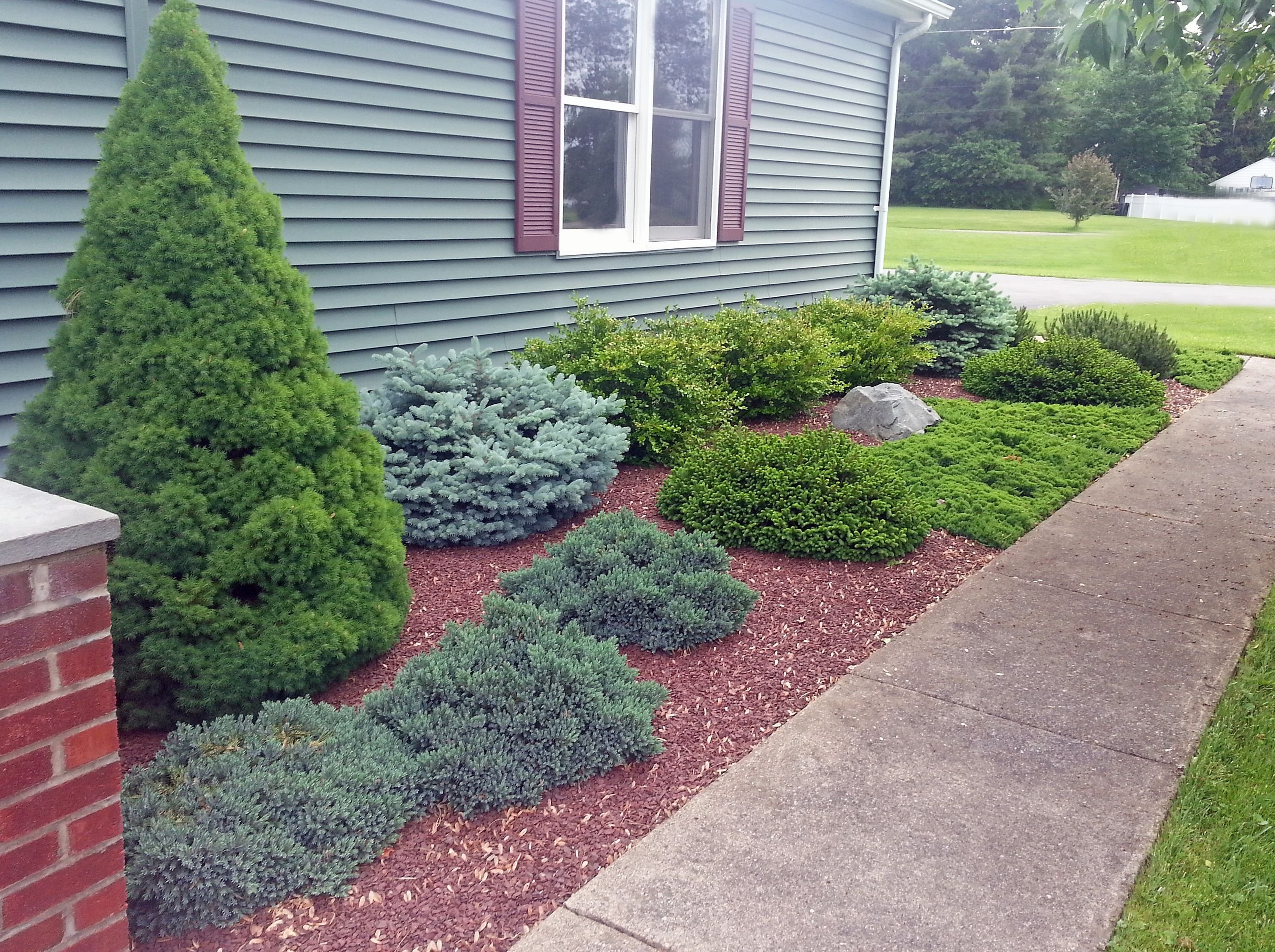 Угловая клумба из хвойников