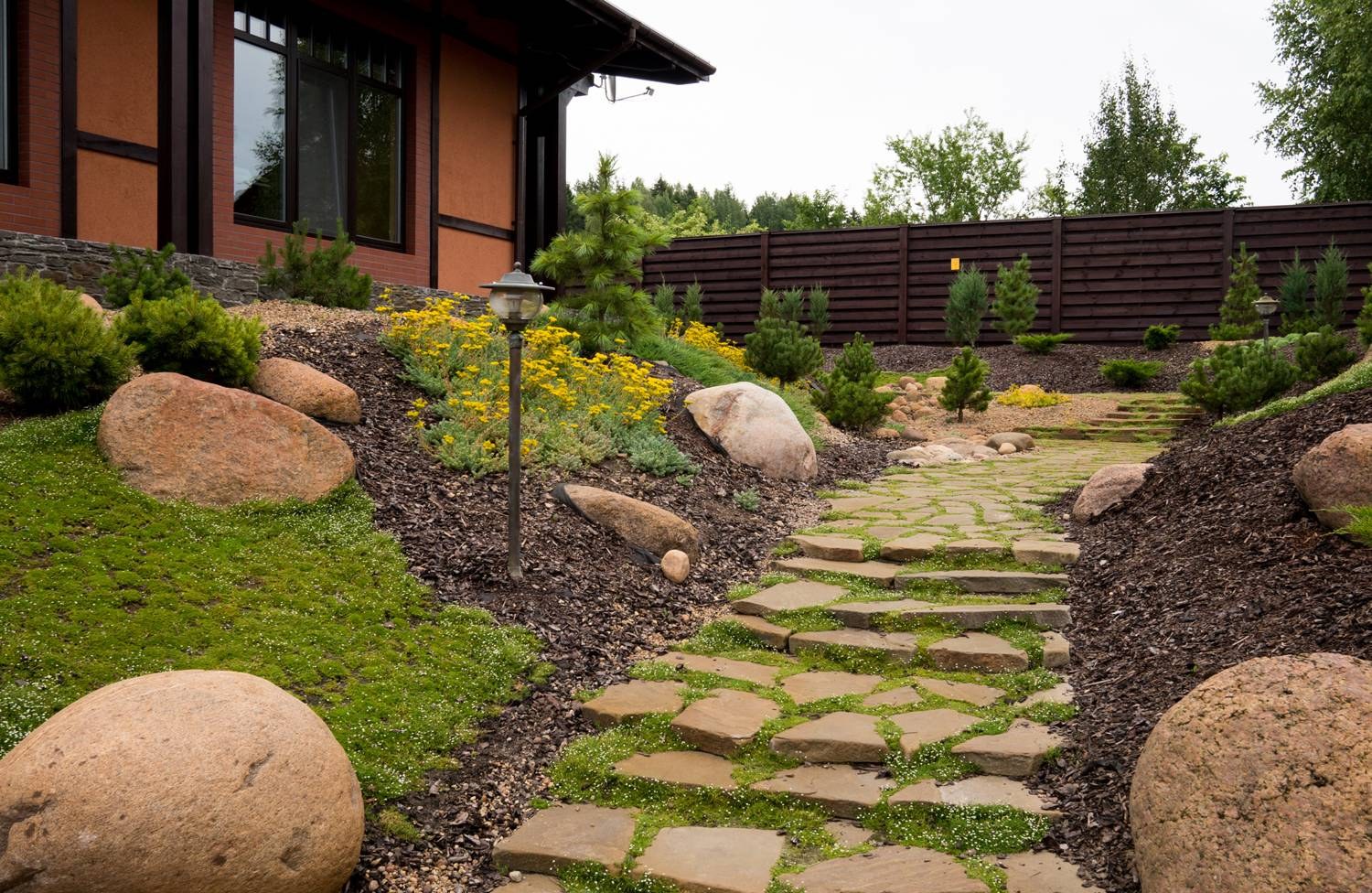 Рокарий перед домом в ландшафтном дизайне