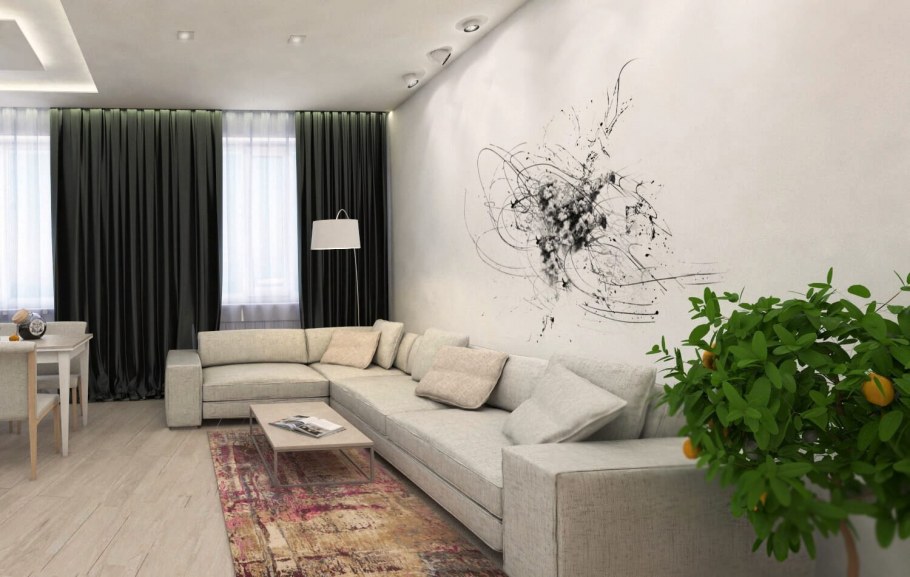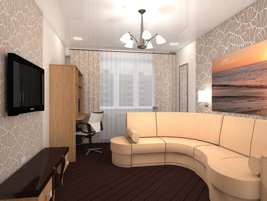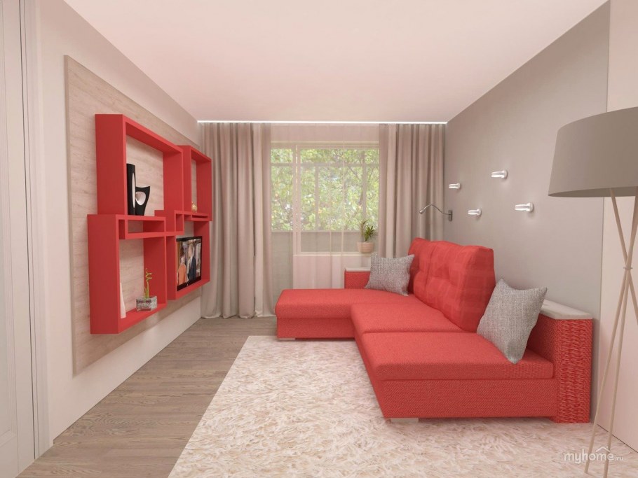 Планировка небольшой комнаты с диваном
