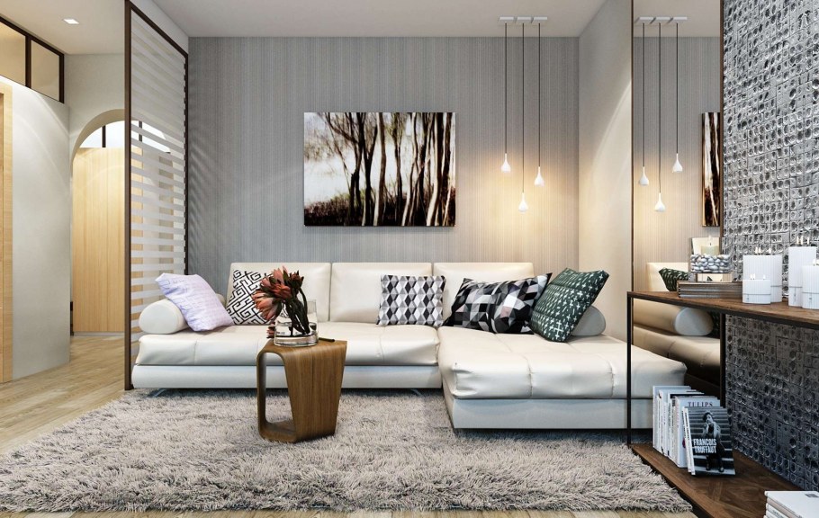Современная гостиная с угловым диваном