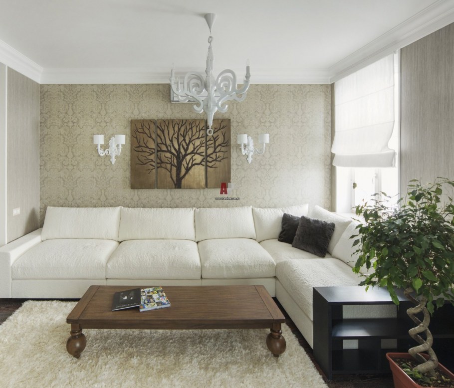 Современная гостиная в светлых тонах