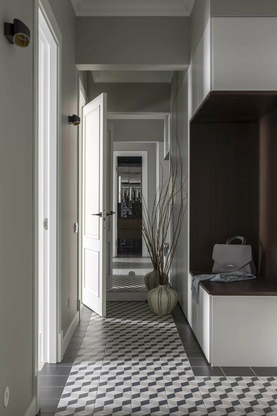 Прихожая в бело серых тонах