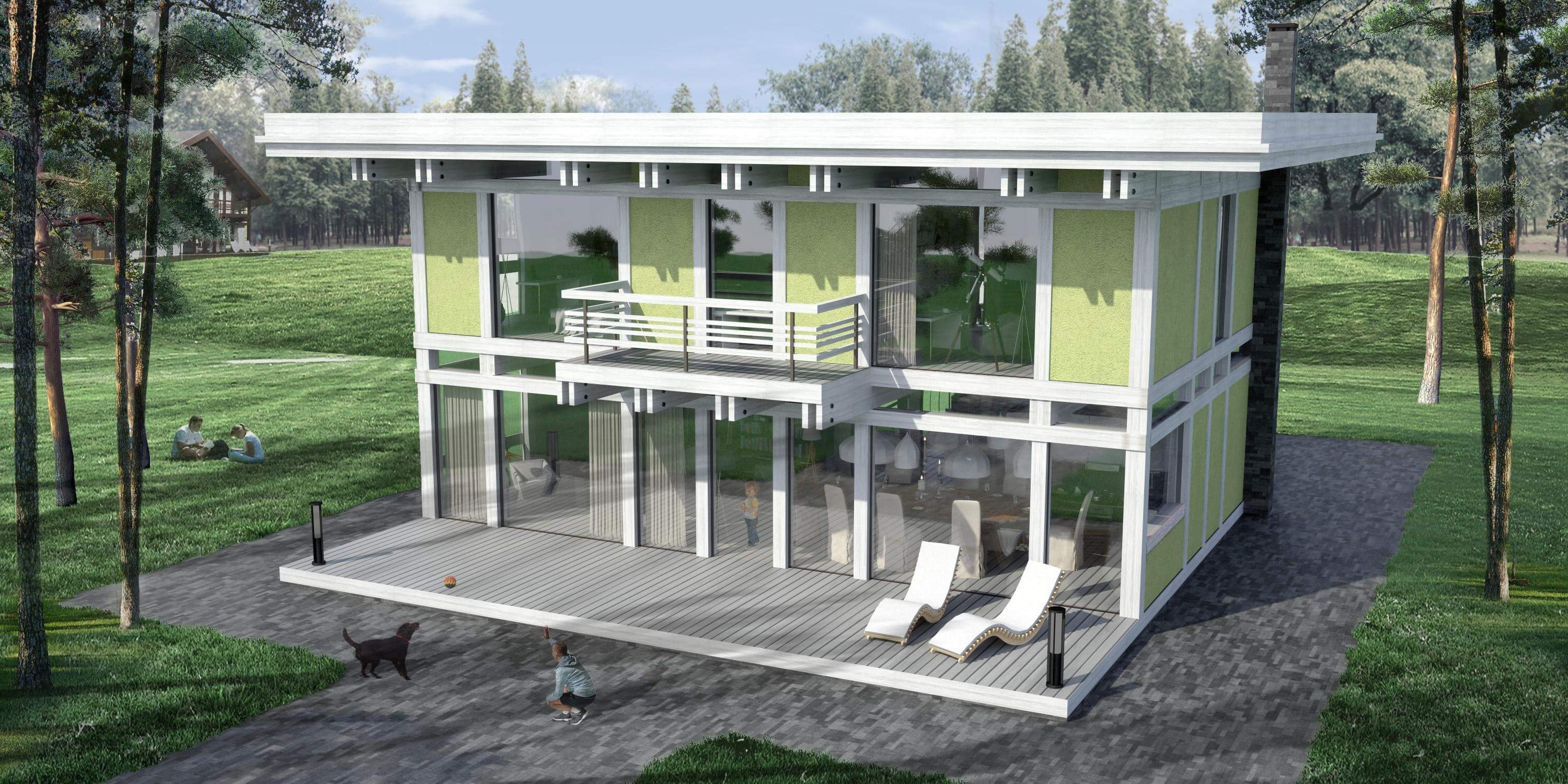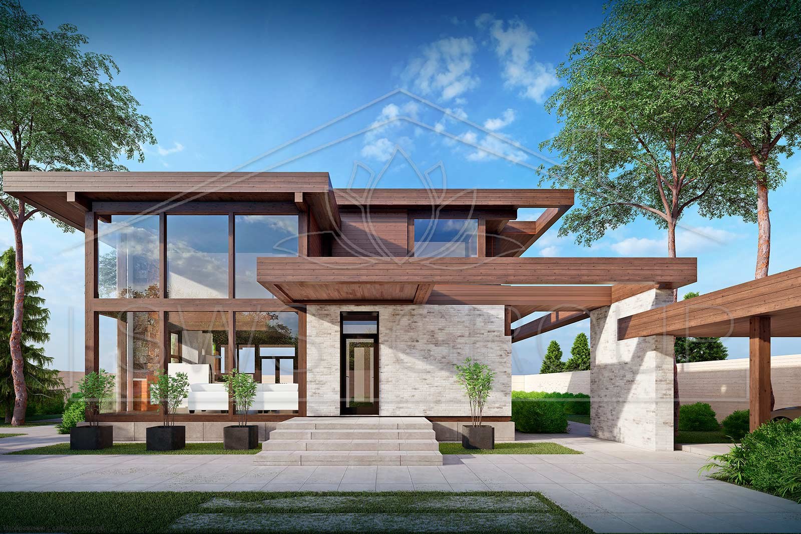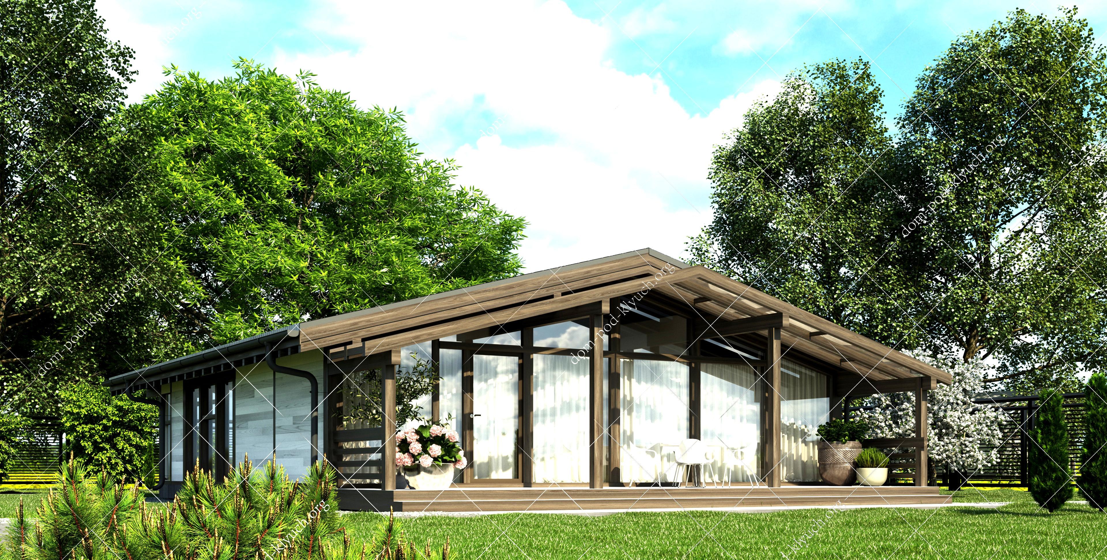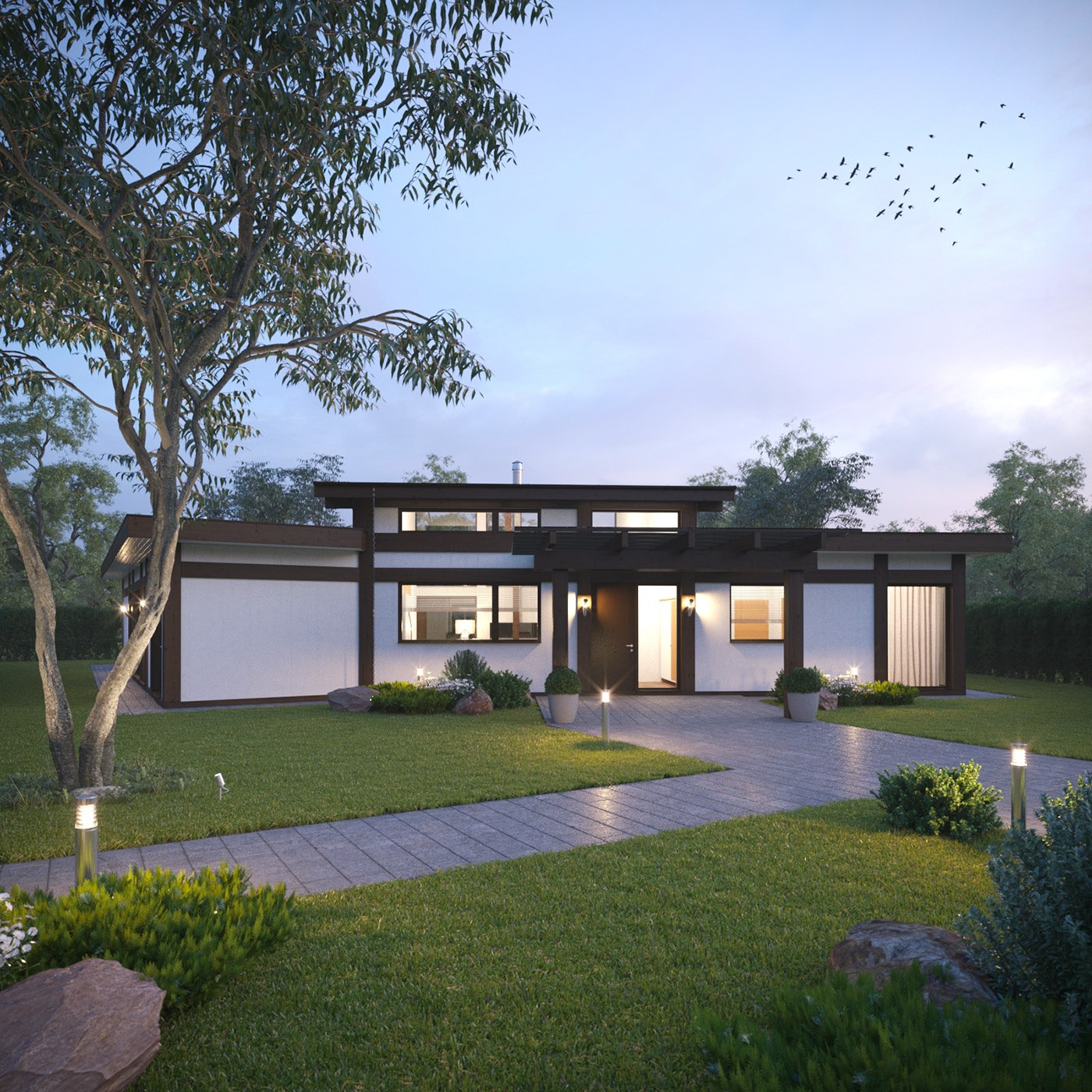 Одноэтажный дом с плоской крышей фахверк (59 фото)