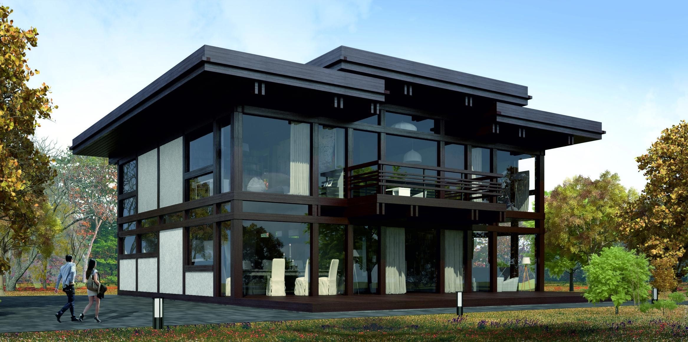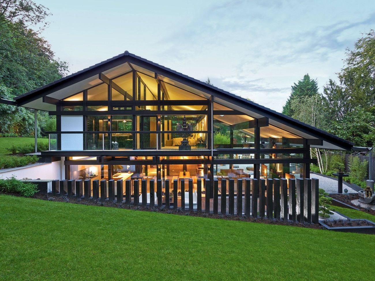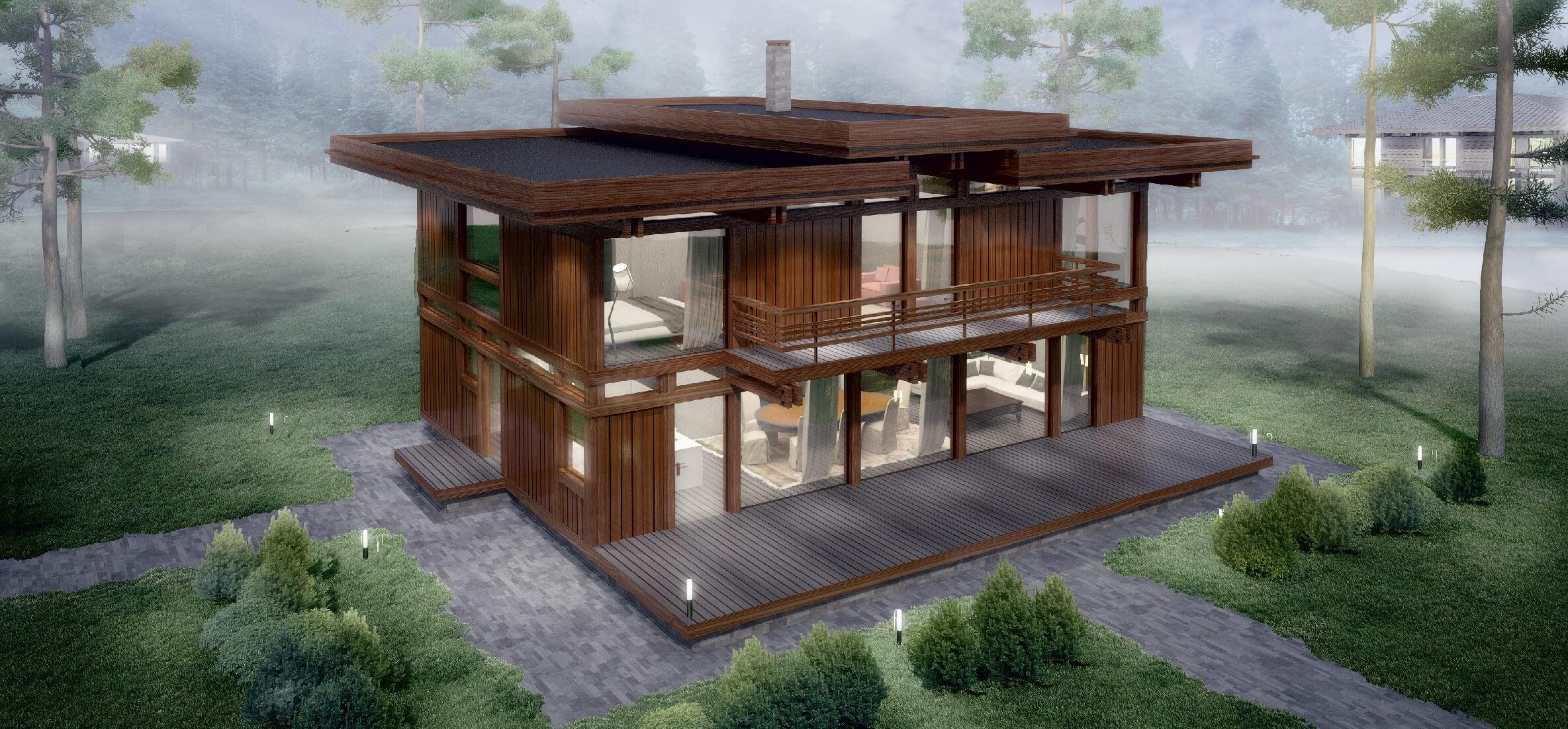 Одноэтажный дом с плоской крышей фахверк (59 фото)