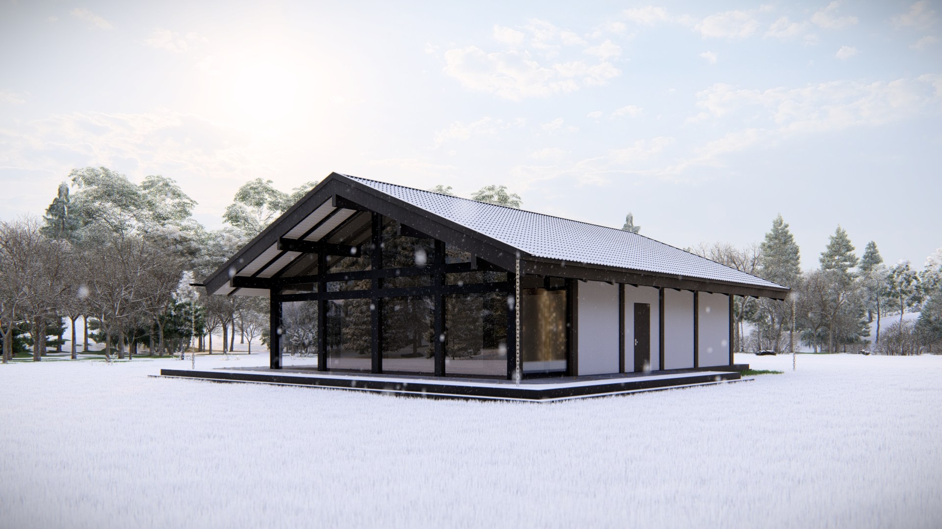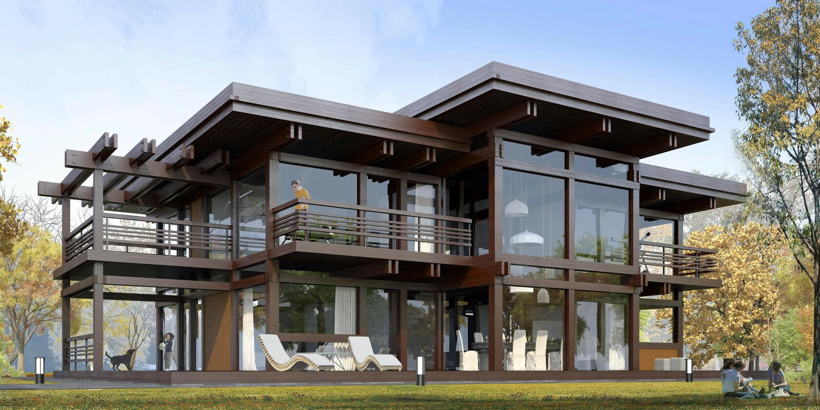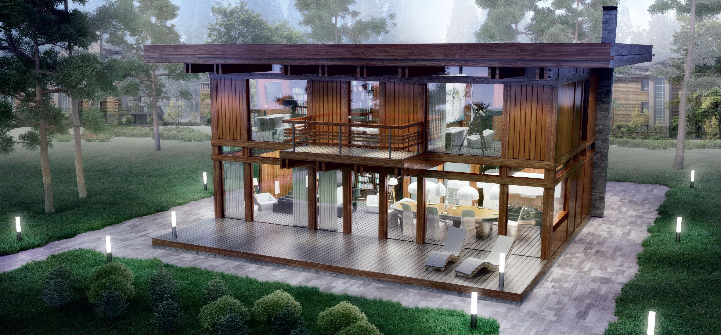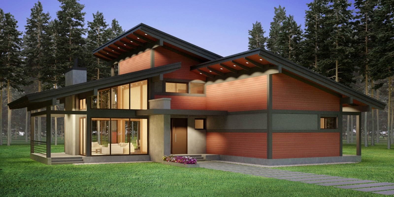 Одноэтажный дом с плоской крышей фахверк (59 фото)