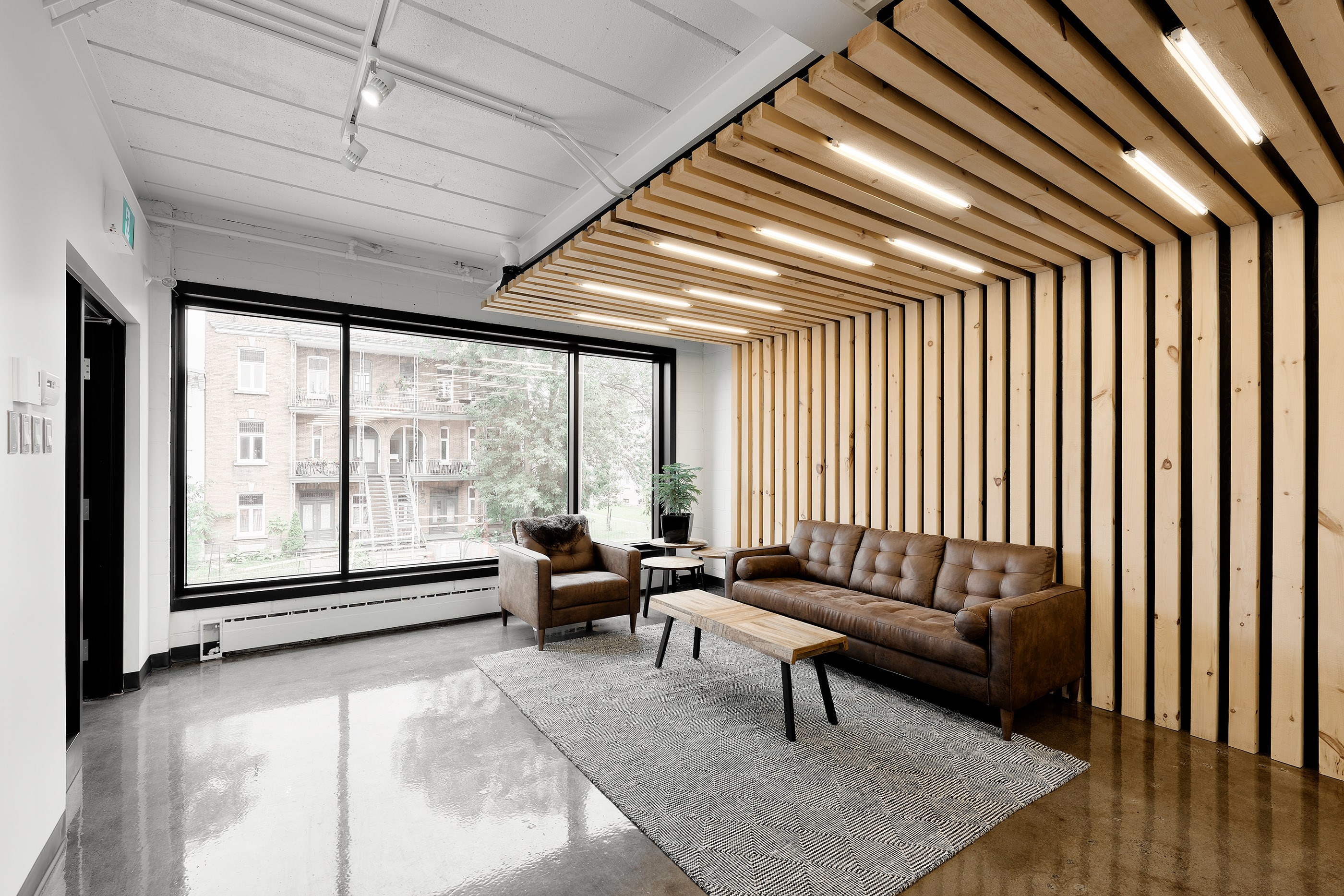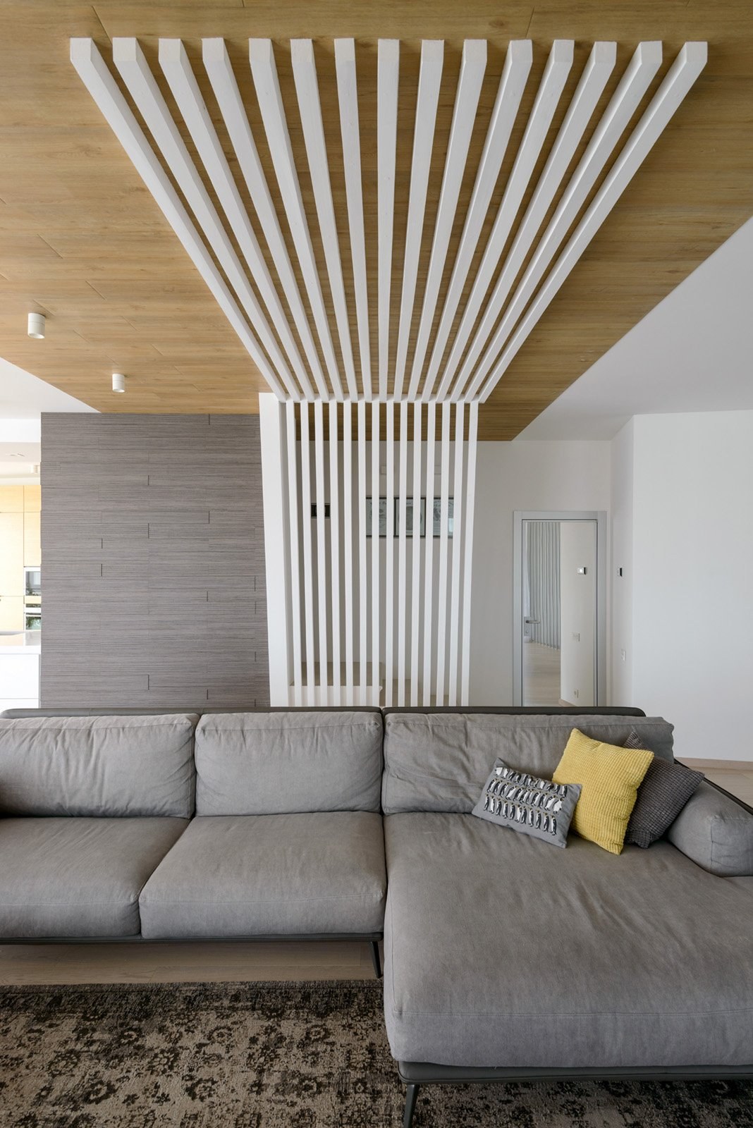 Деревянные перегородки в сером интерьере