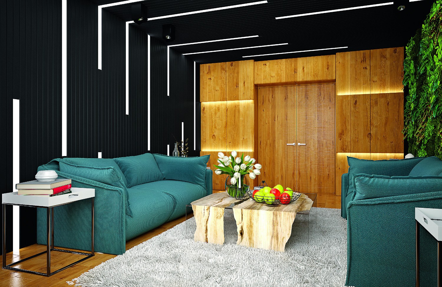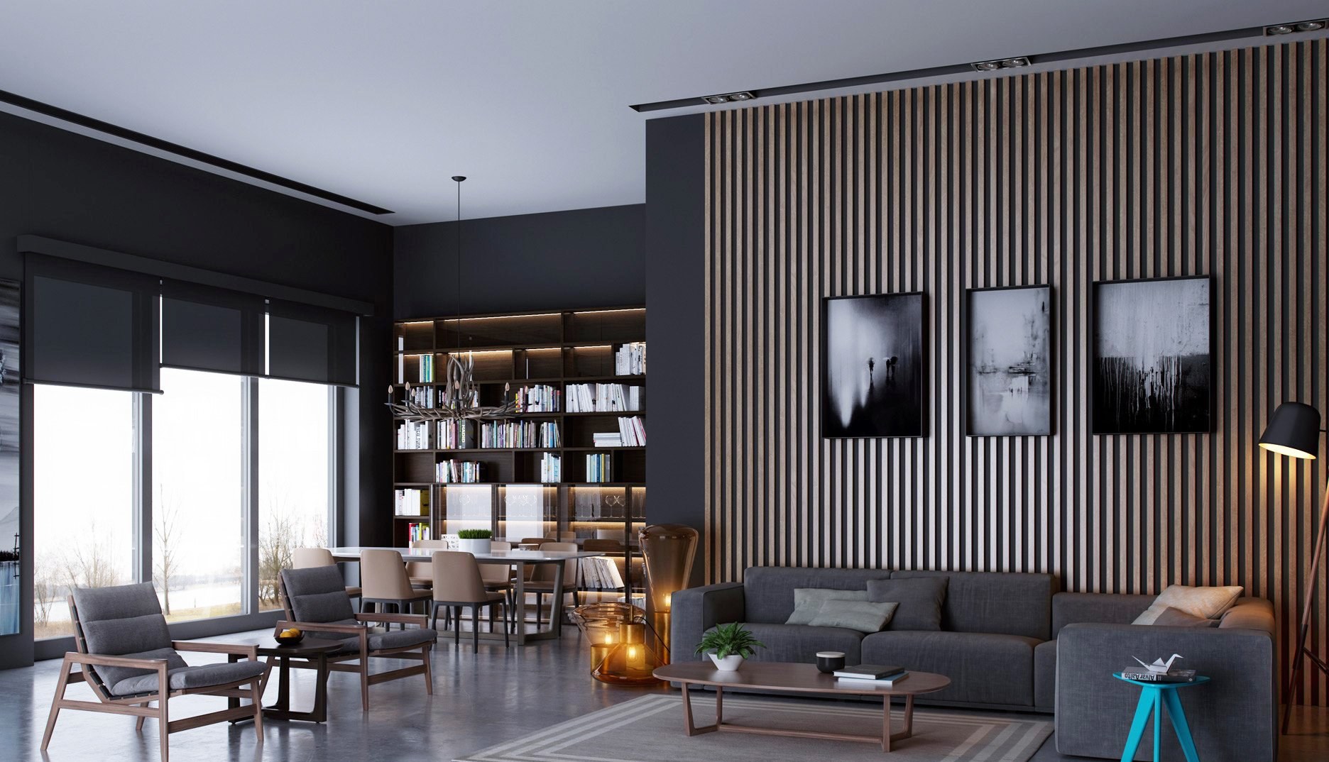 Черные рейки в интерьере