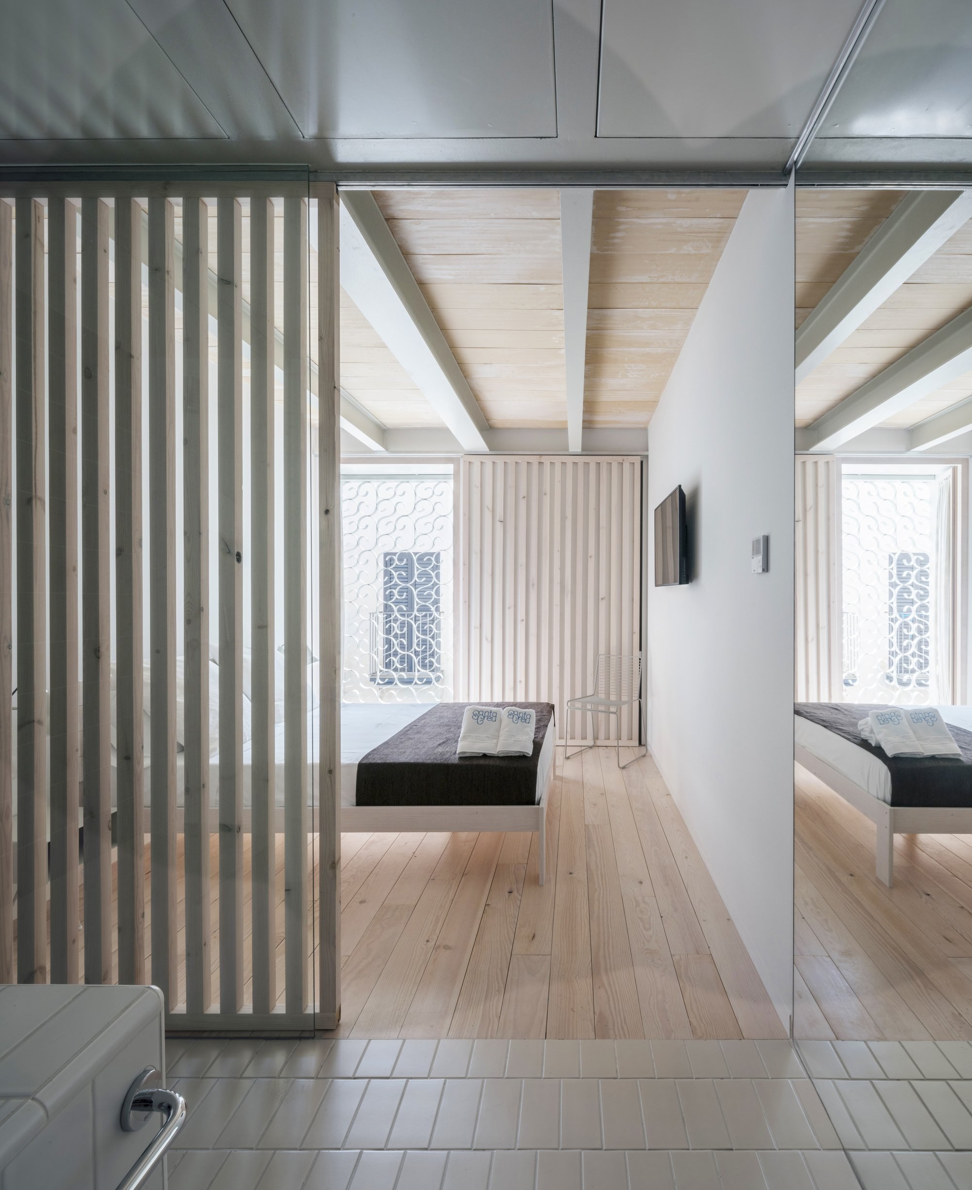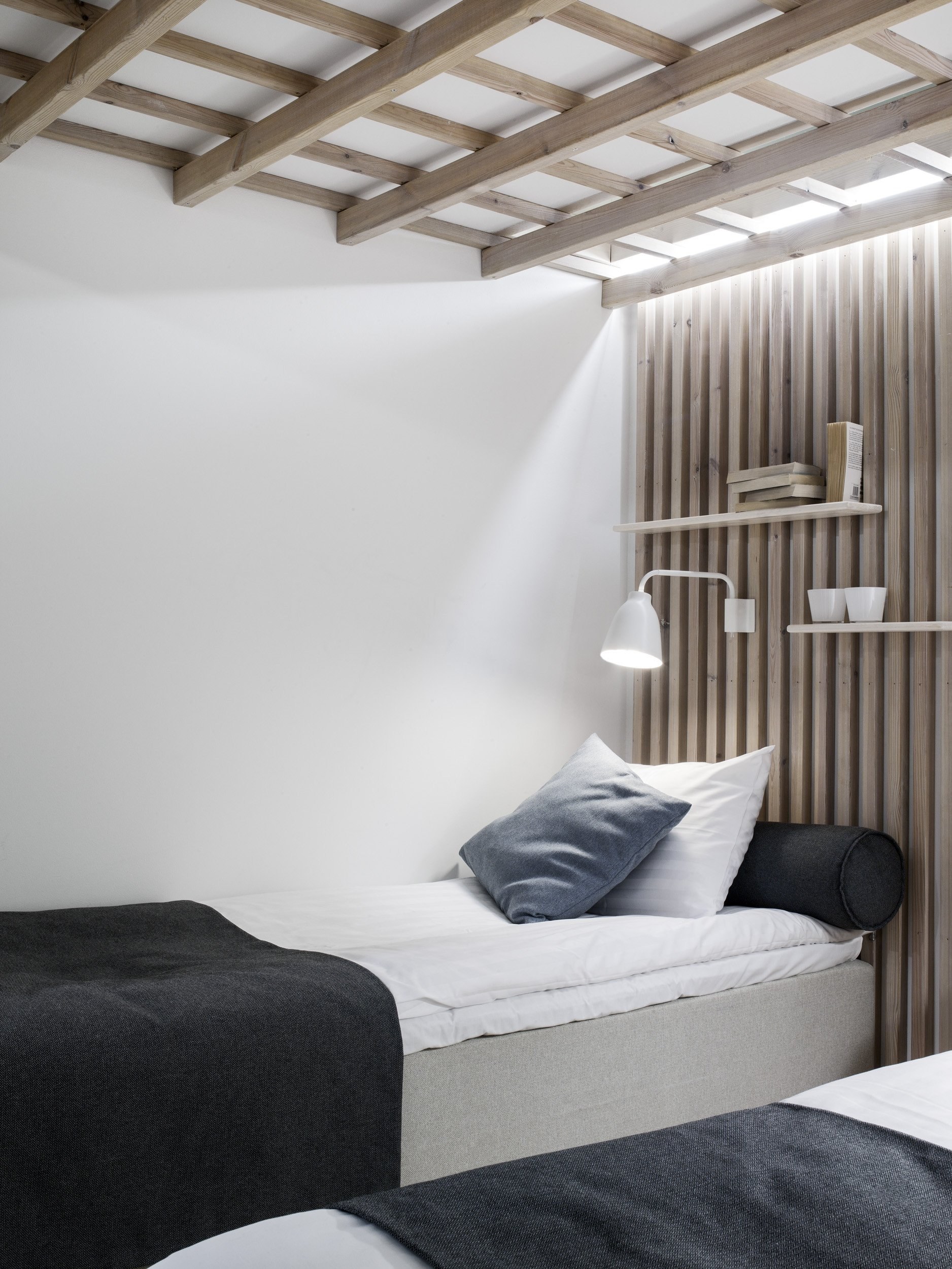 Деревянные рейки в спальне