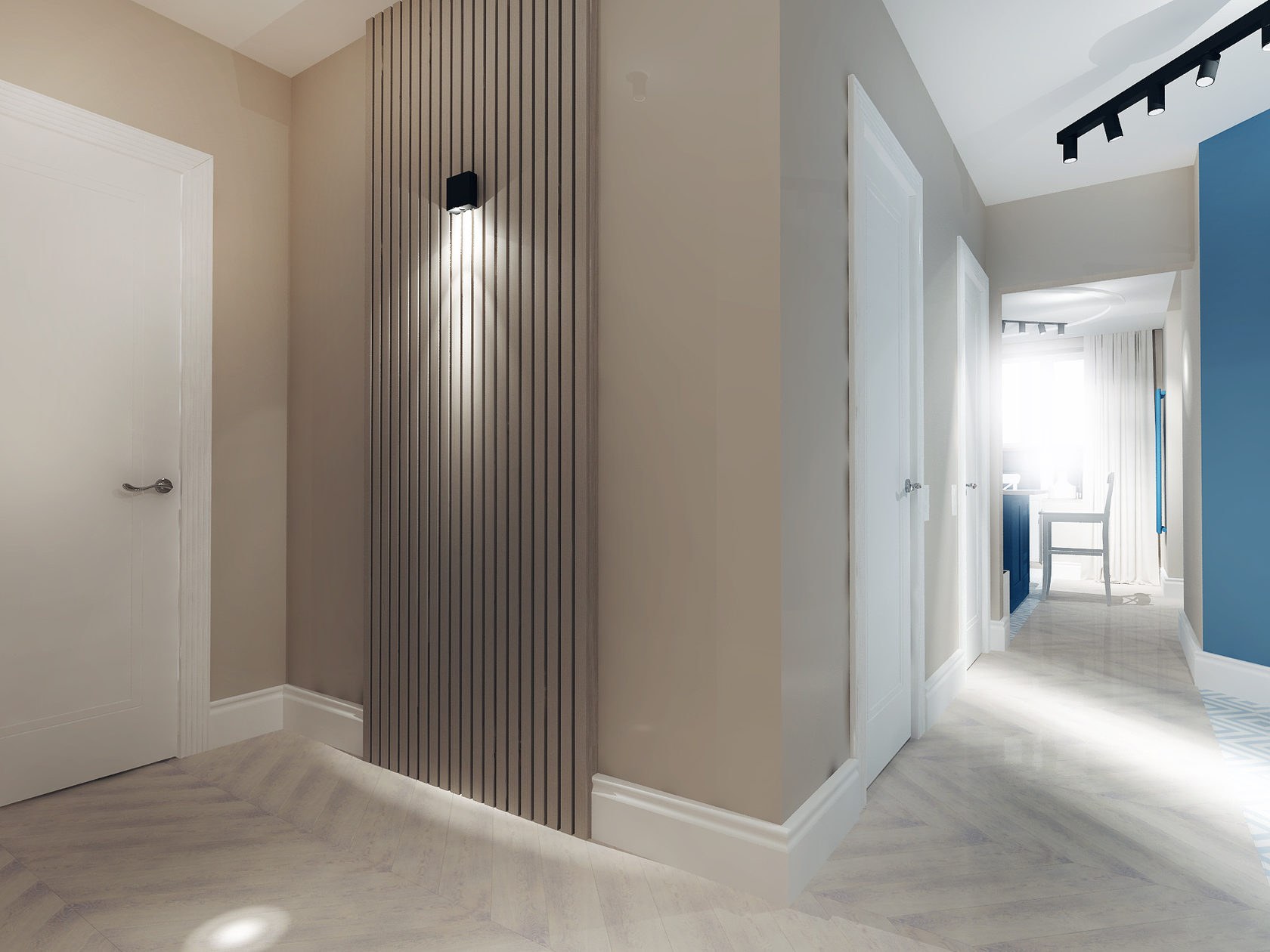 Деревянные рейки в коридоре
