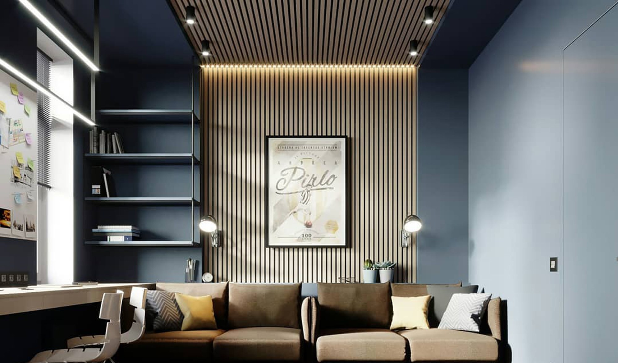 Комната спальня с деревянными рейками
