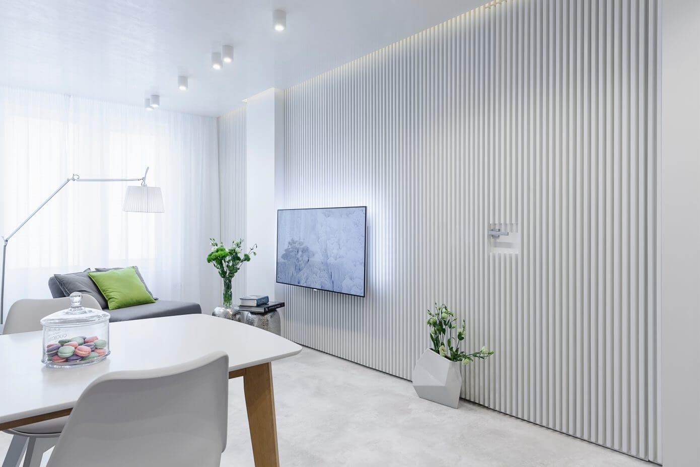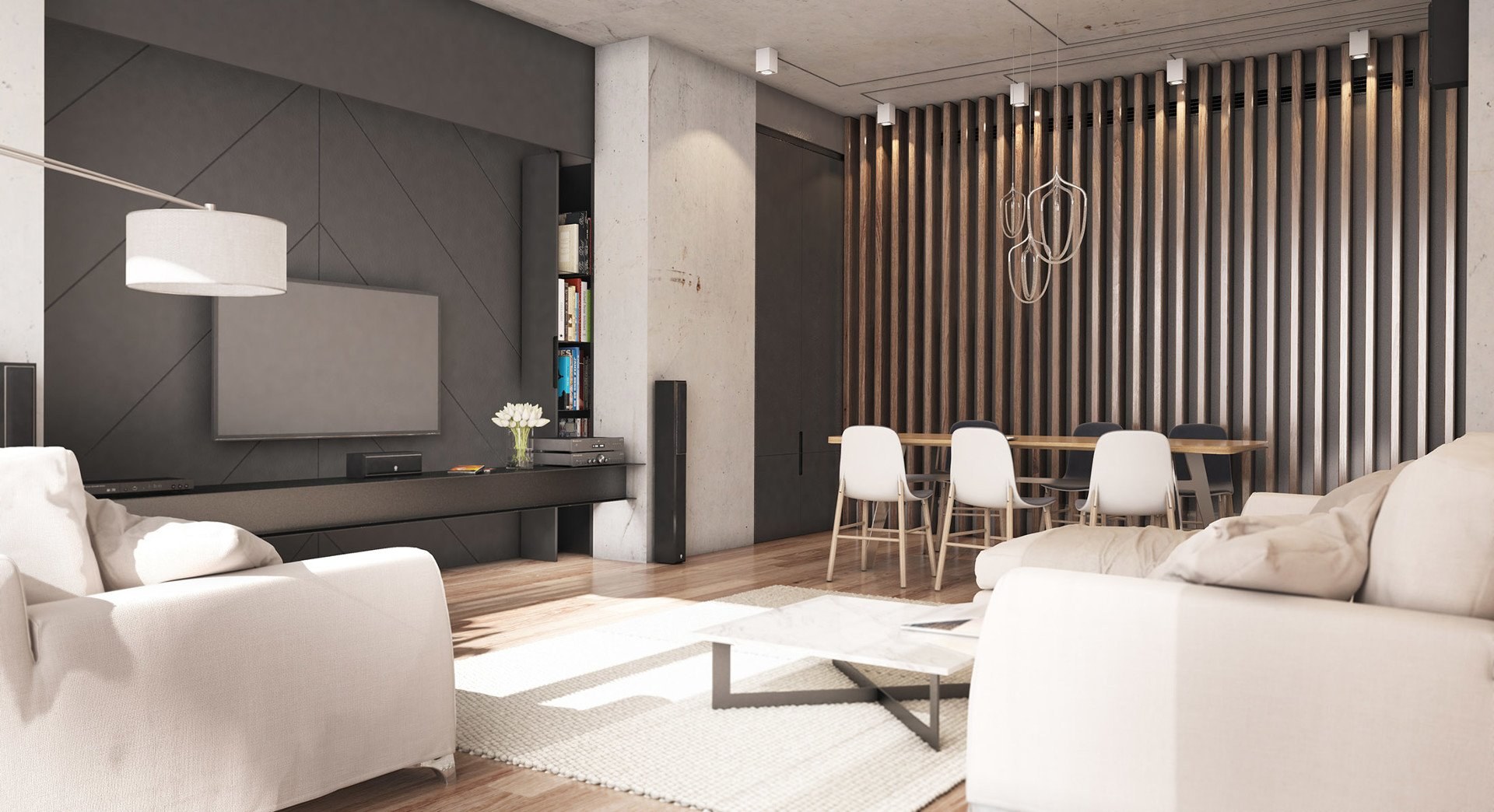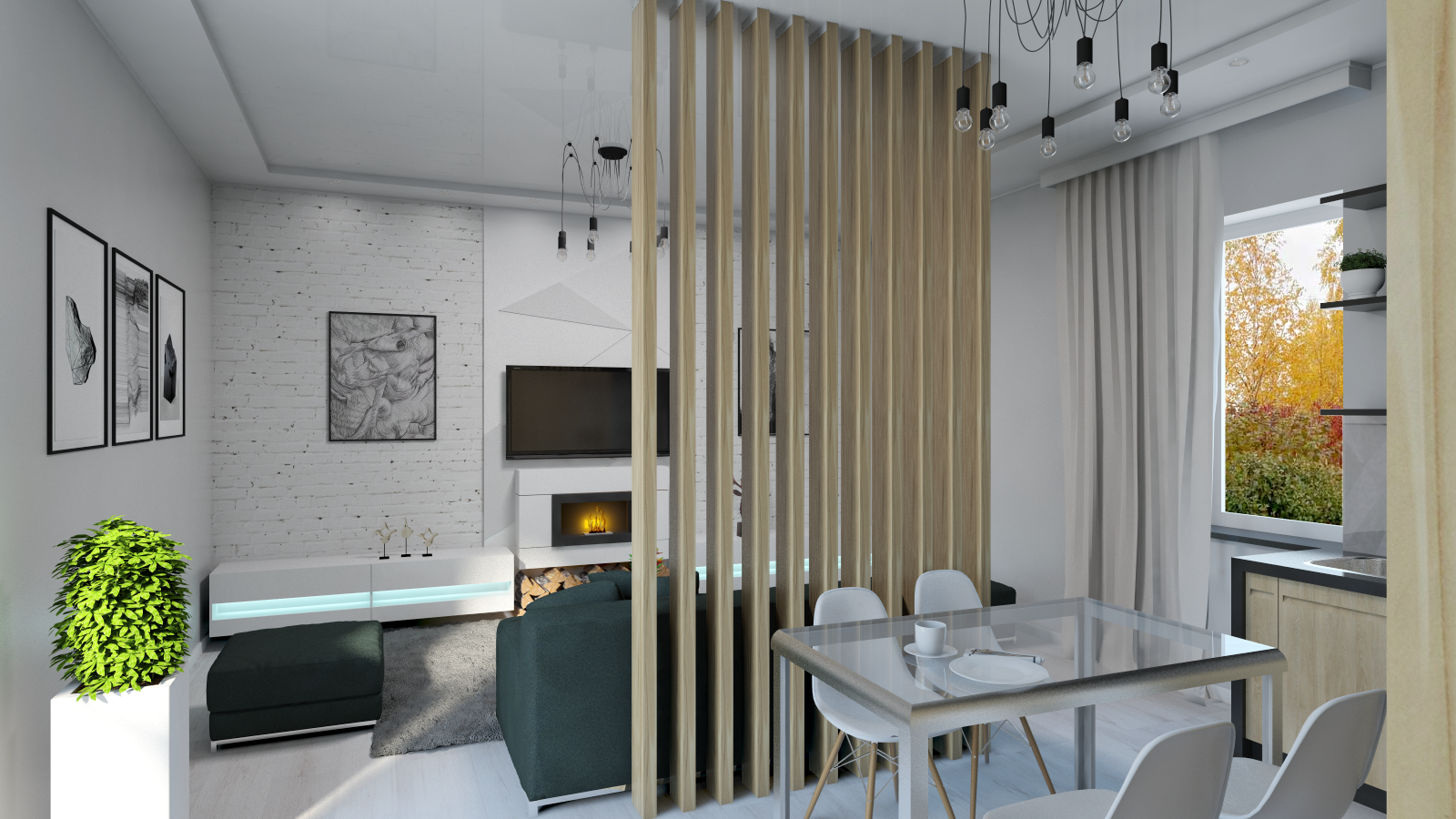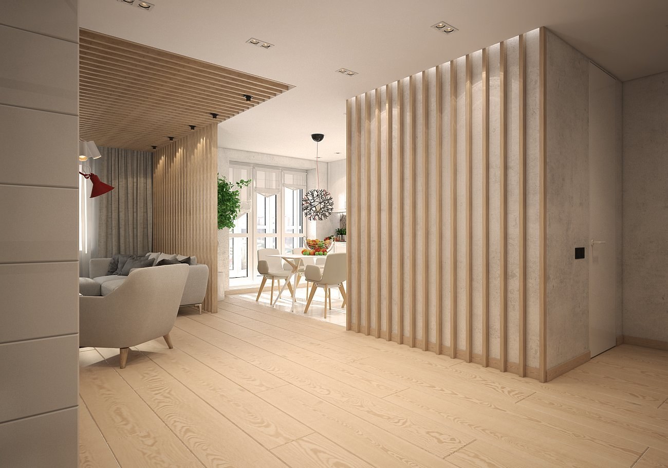 Реечная перегородка для зонирования гостиной