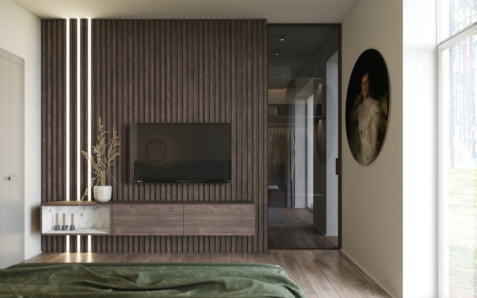 Реечная стеновая панель в спальне