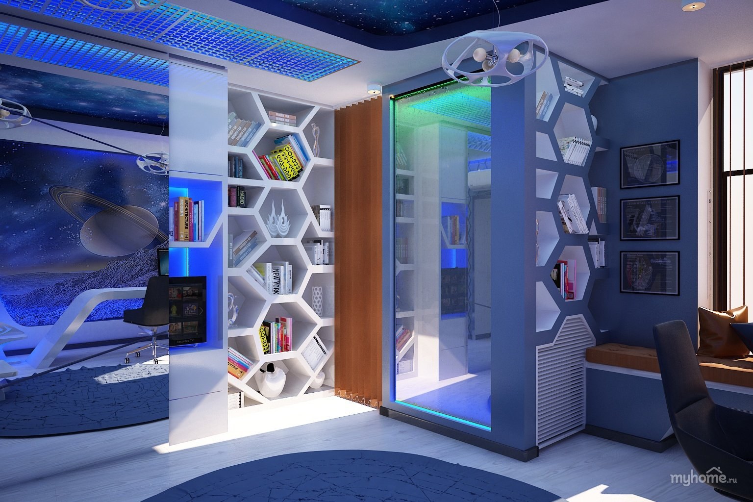 Интерьер комнаты в космическом стиле