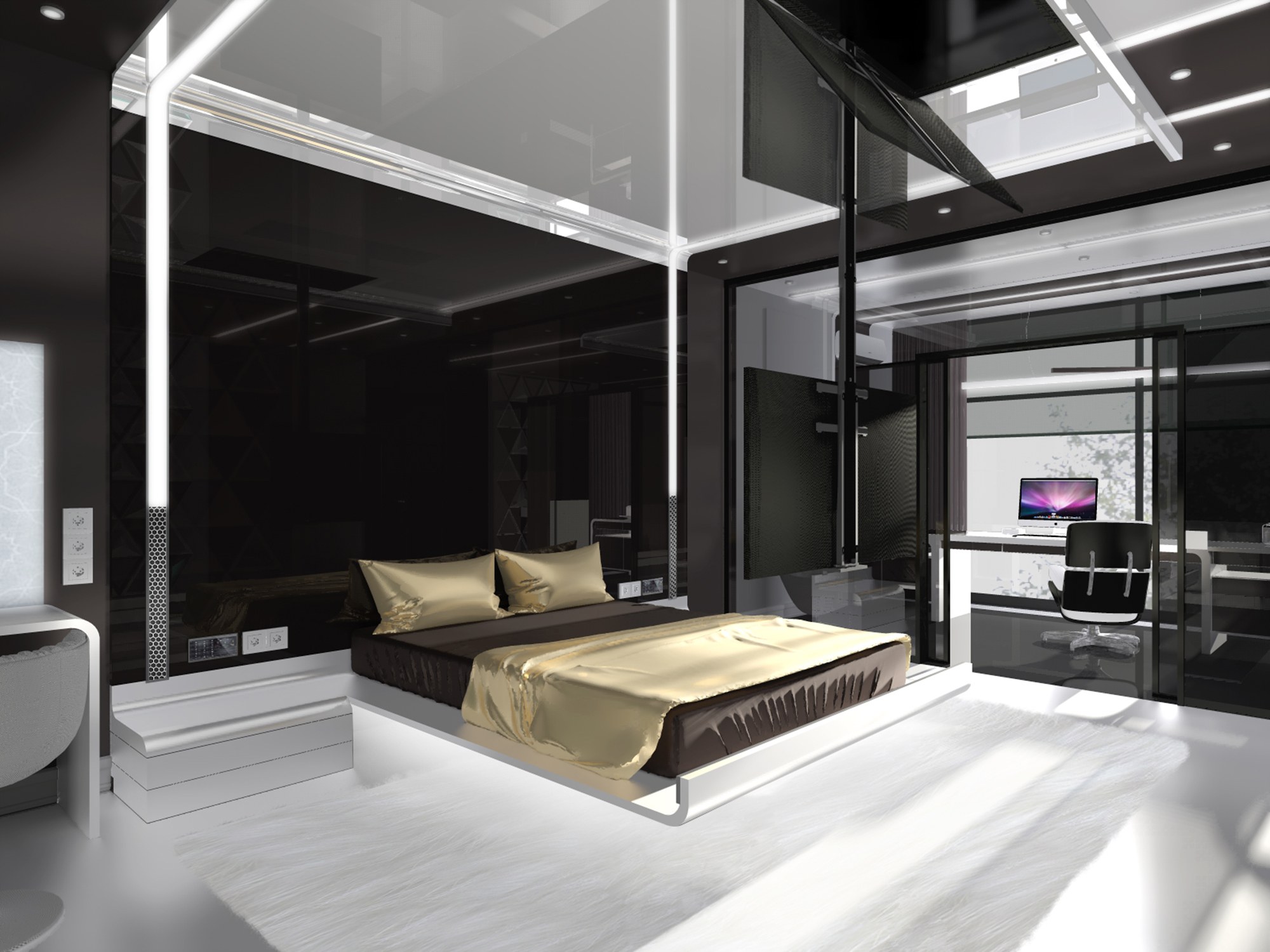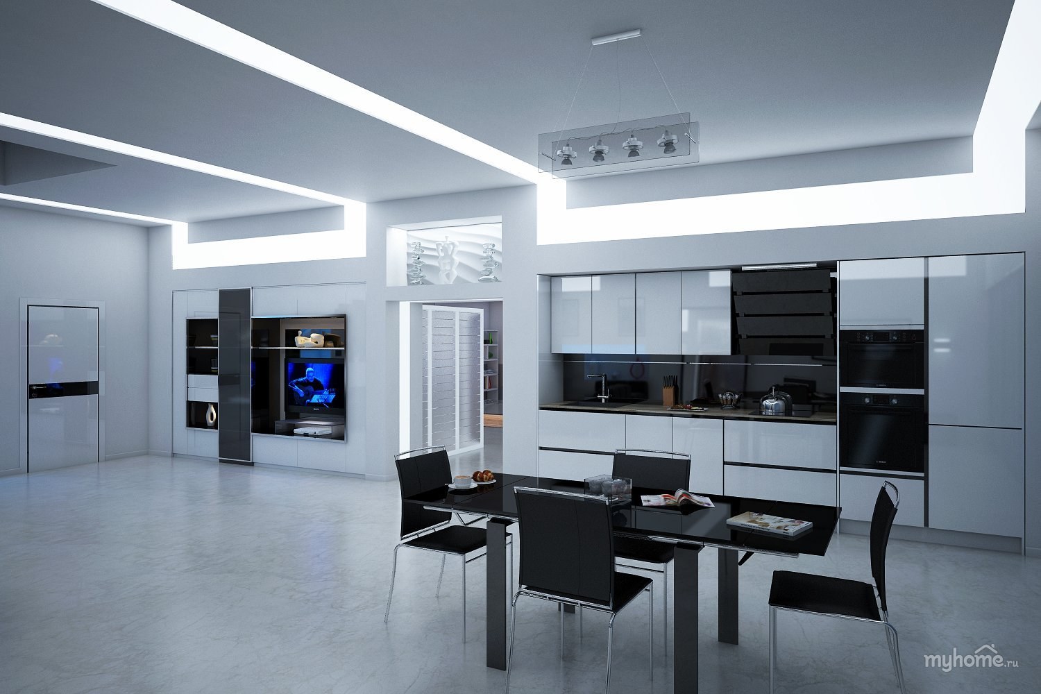 Эскиз в стиле хай тек из металла в интерьере (43 фото)