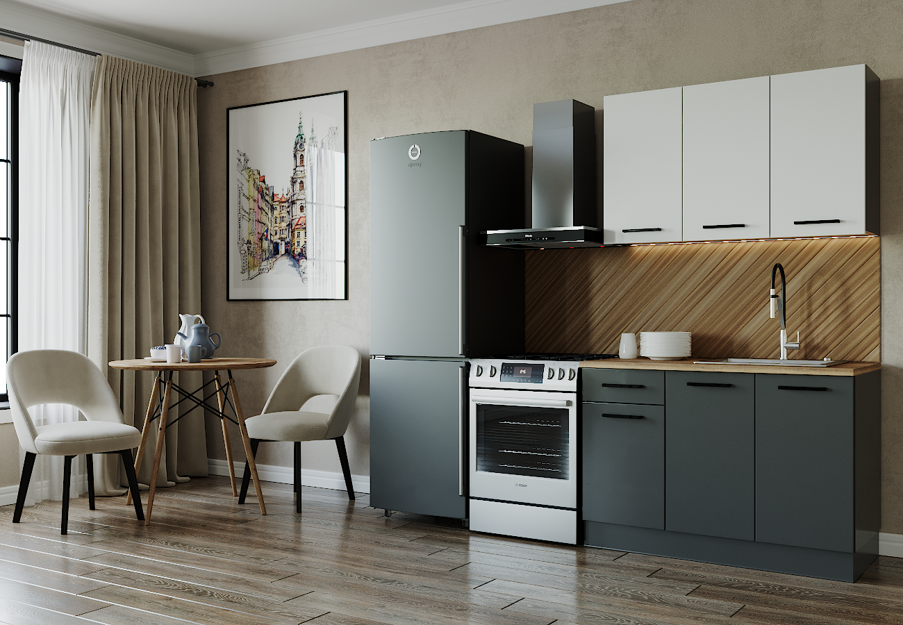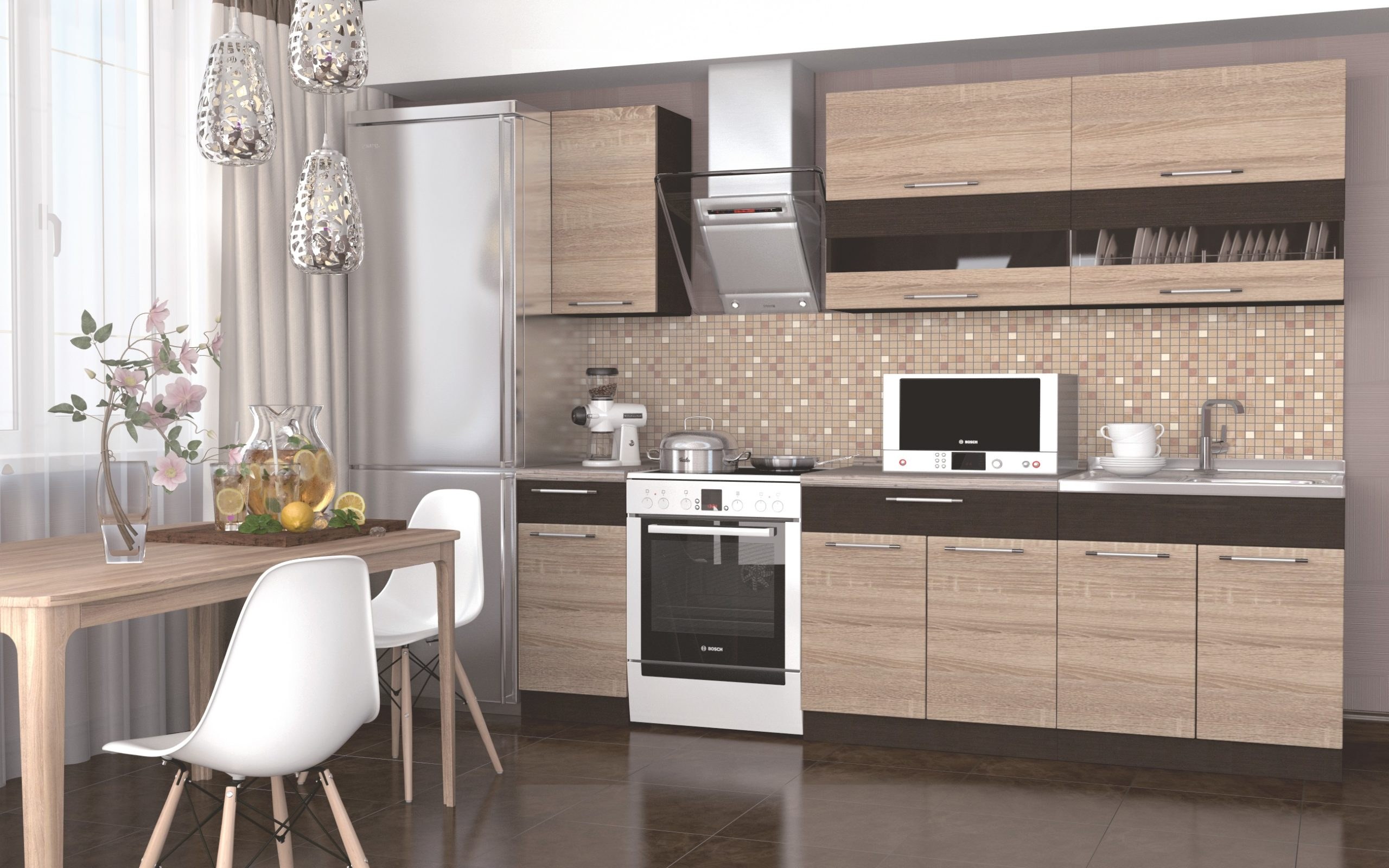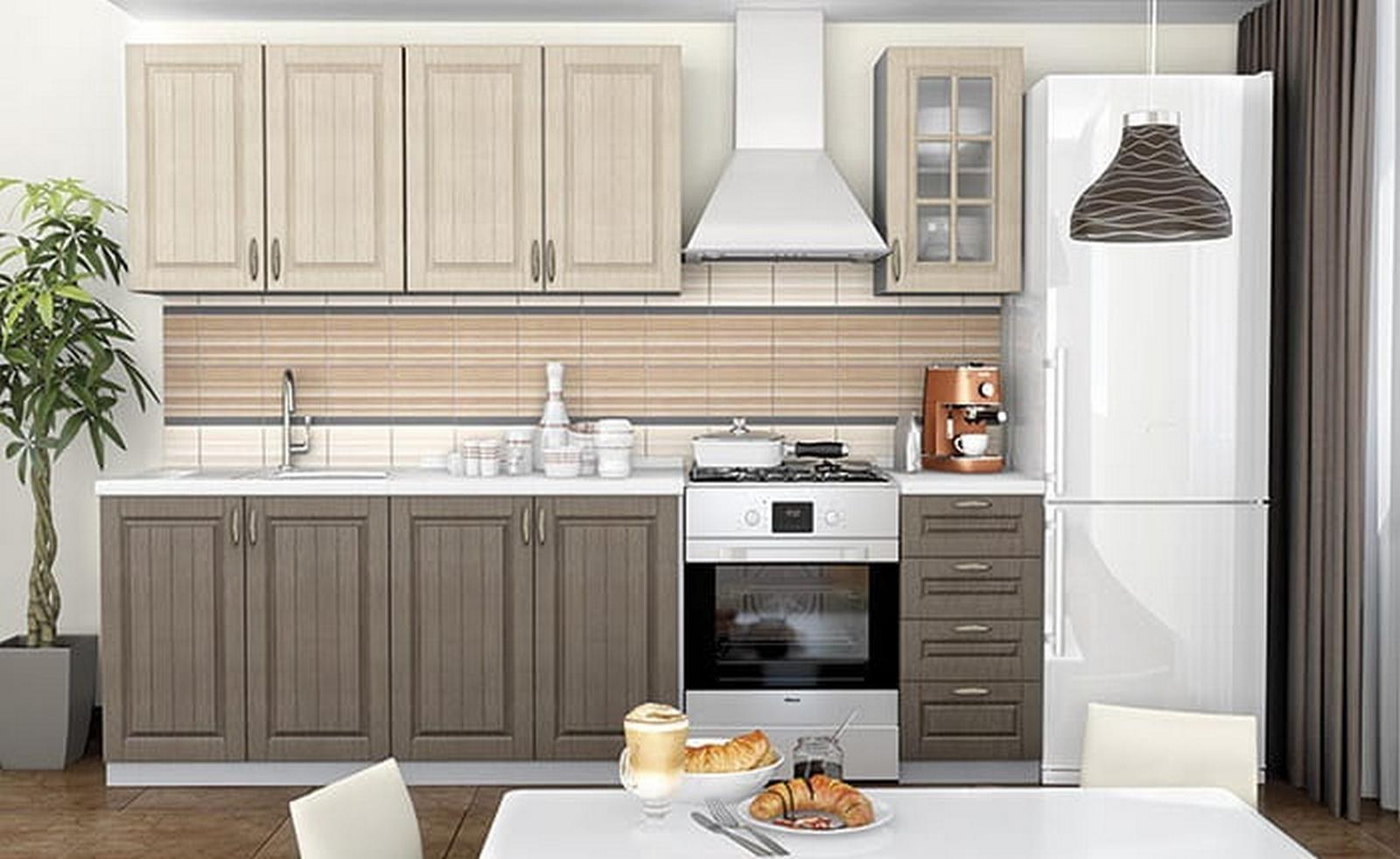 Двухцветные кухонные гарнитуры прямые в интерьере (36 фото)