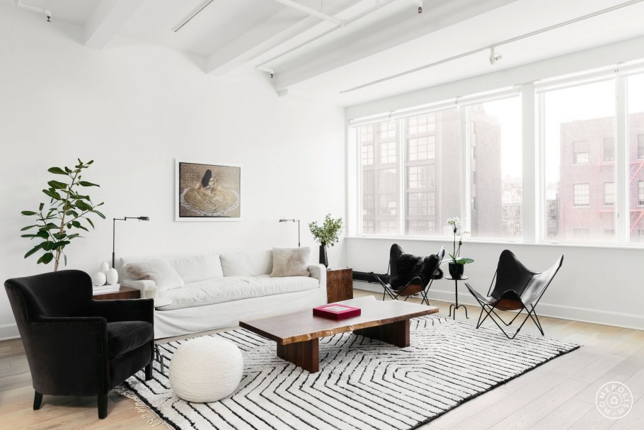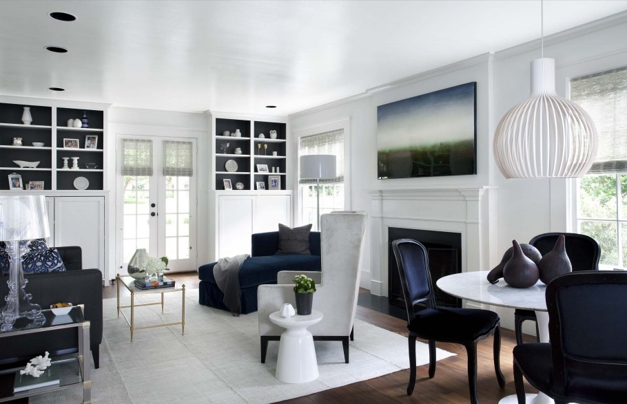 Яркие аксессуары для черно-белого в интерьере гостиной