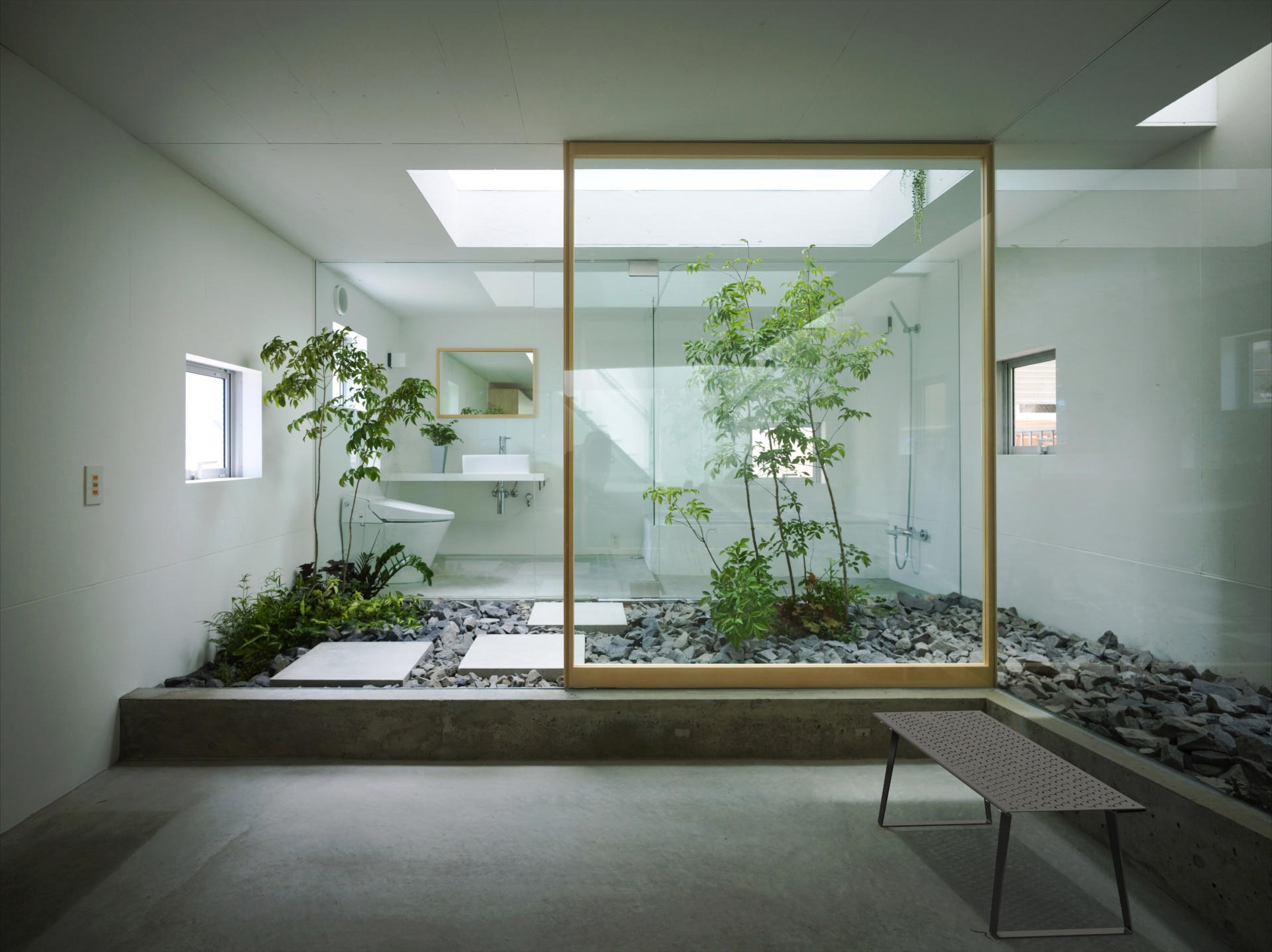 Стеклянная стена с растениями