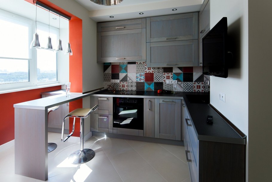 Планировка маленькой кухни с барной стойкой