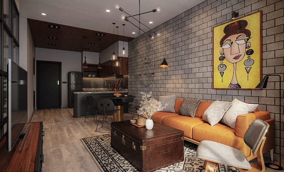 Интерьер лофт гостиная 15кв