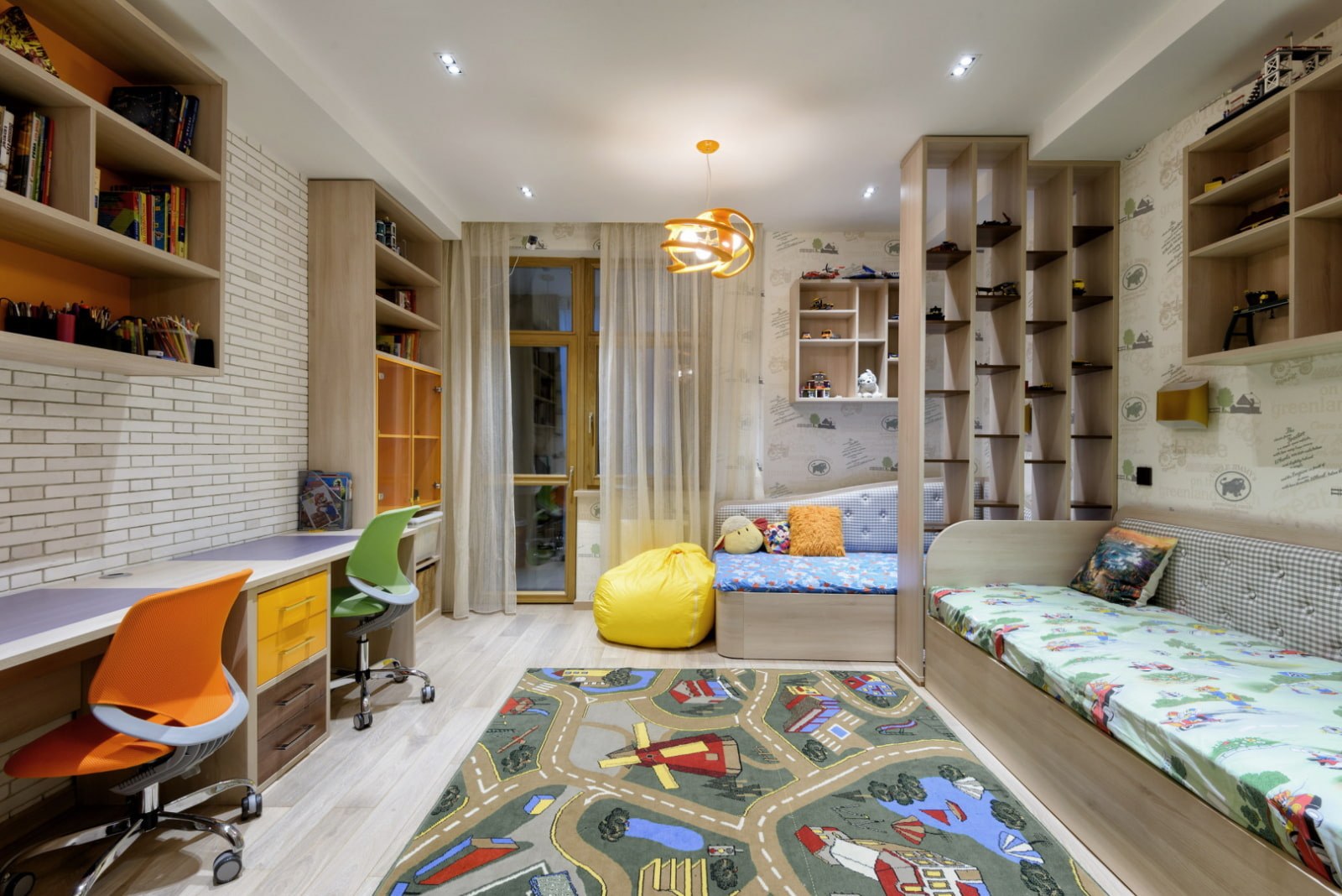 Зонирование детской комнаты для двоих детей