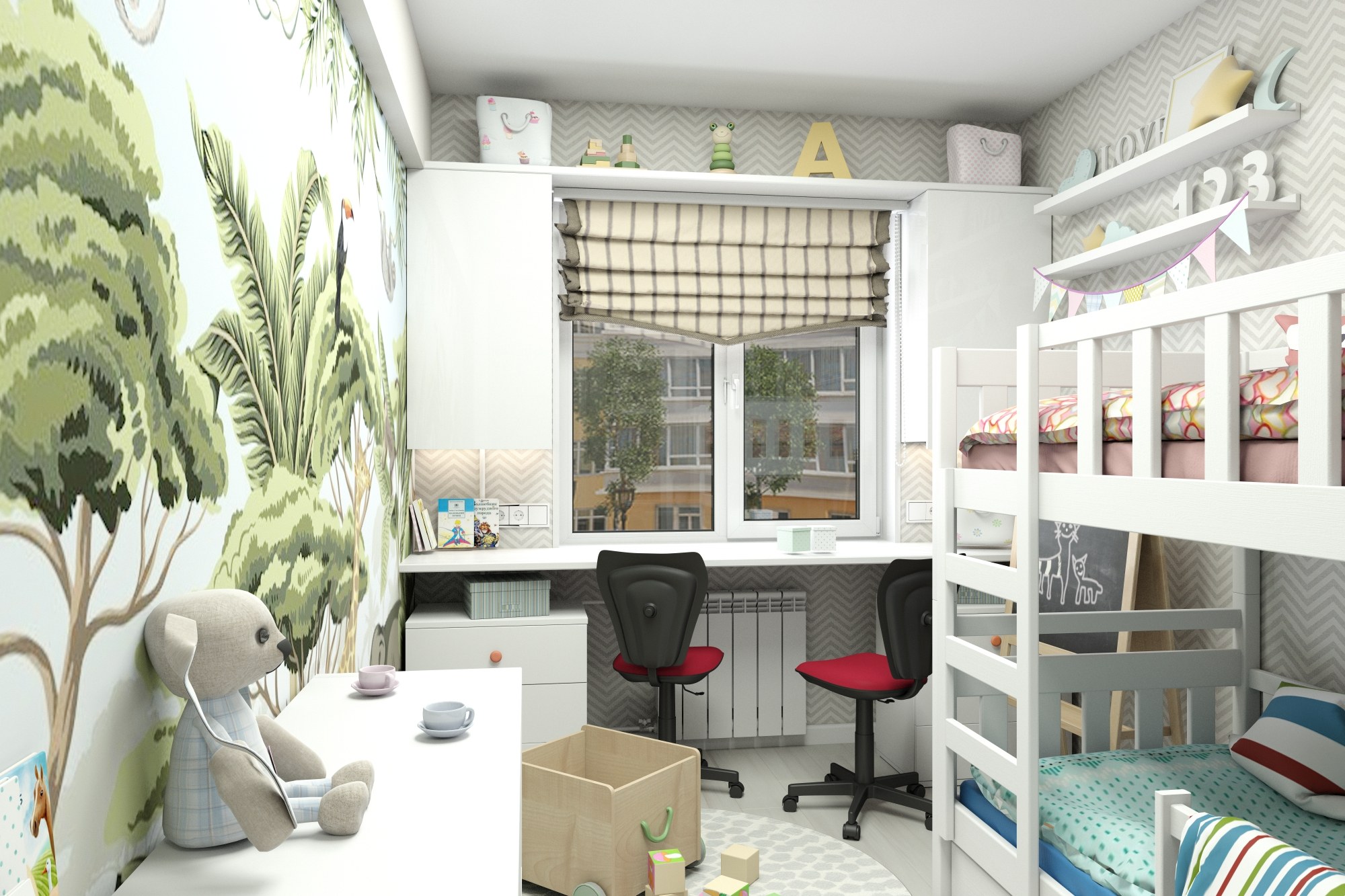 Детская комната 10 кв м для двоих разнополых