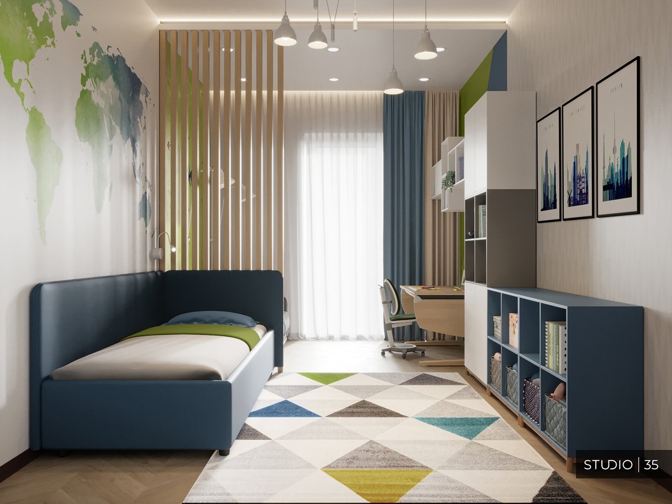 Комната для подростка в зеленых тонах