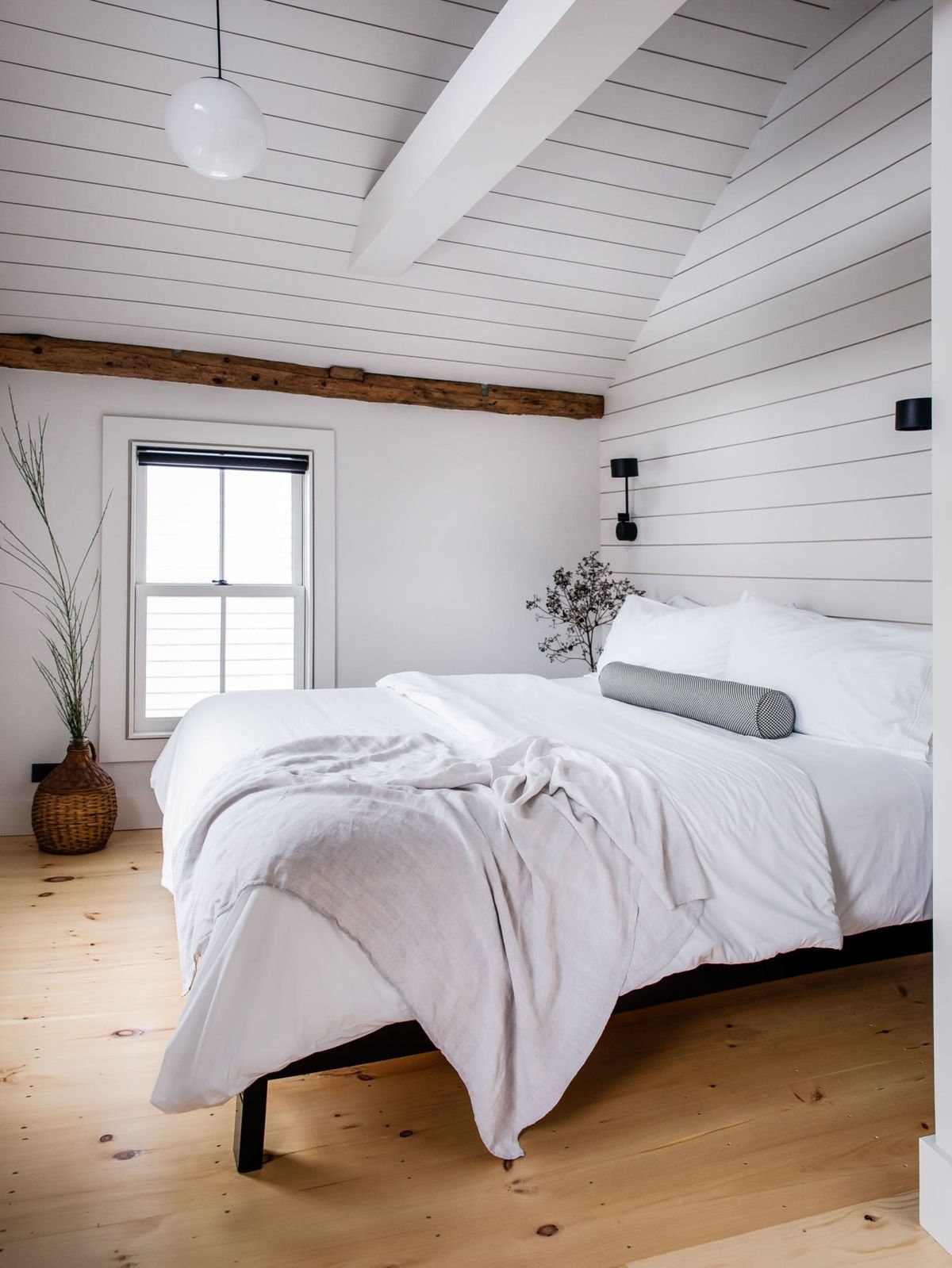 Белая спальня в деревянном доме