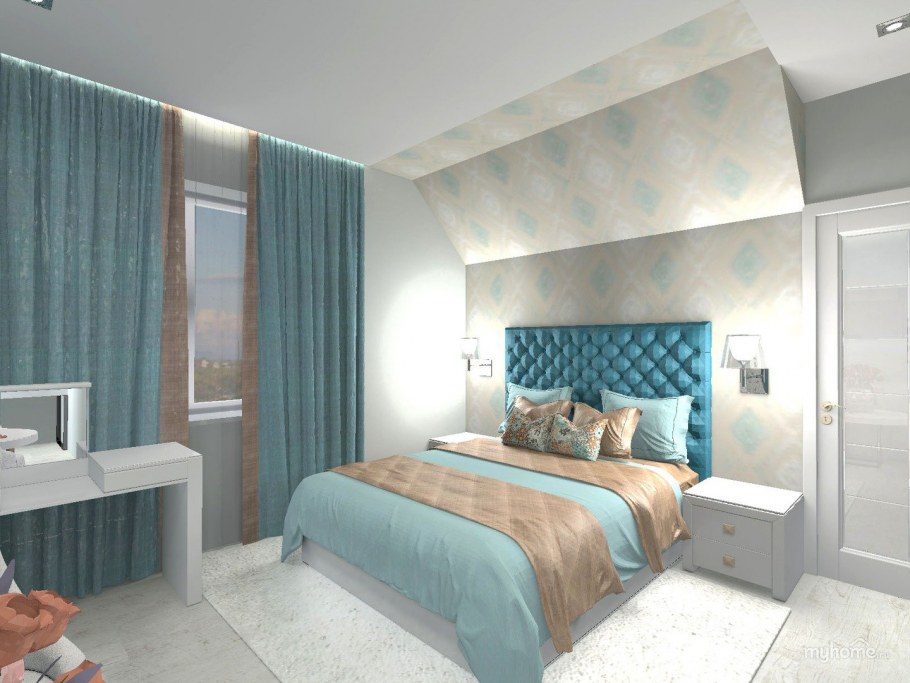 Спальня с бирюзовыми оттенками