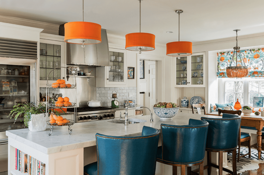Сочетание голубого и оранжевого в интерьере (53 фото)