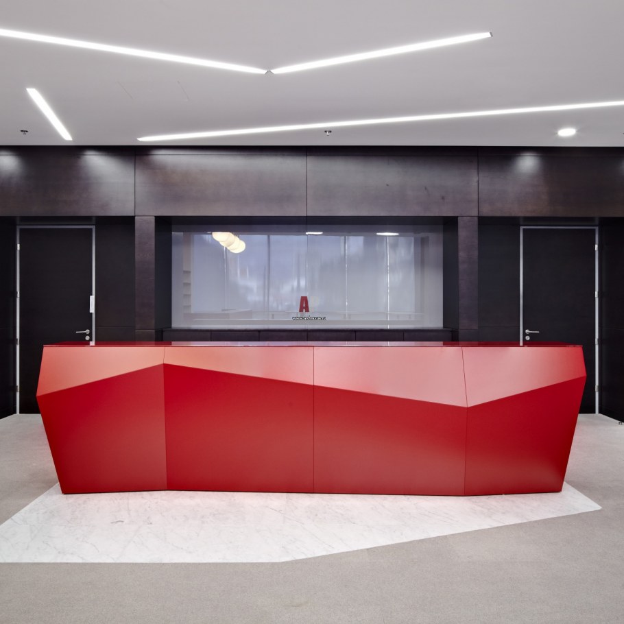 Зона ресепшен в офис в стиле хайтек
