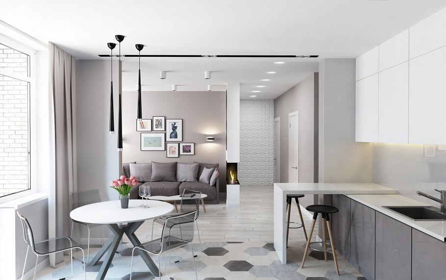 Дизайн квартиры в темно серых и пастельных тонах