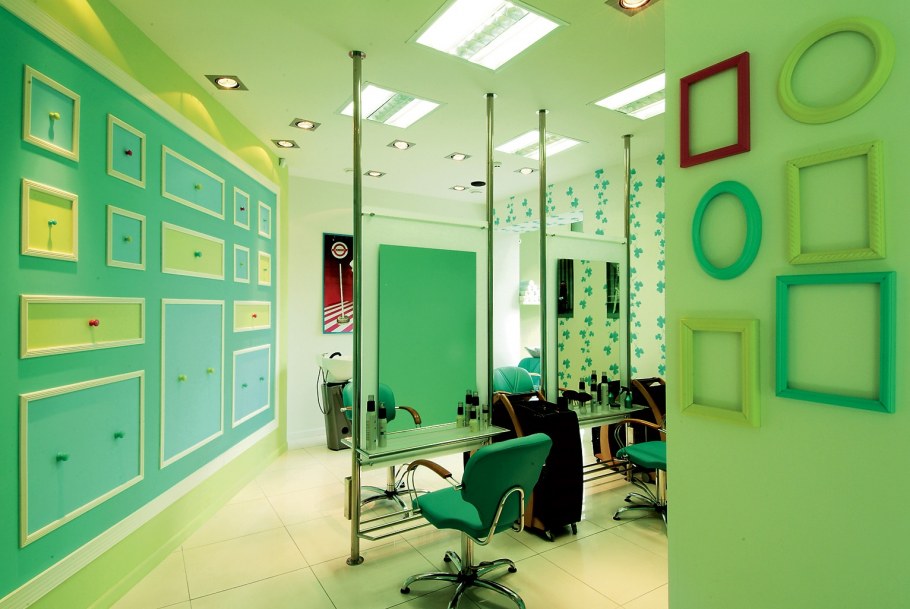 Интерьер салона красоты в зеленом цвете