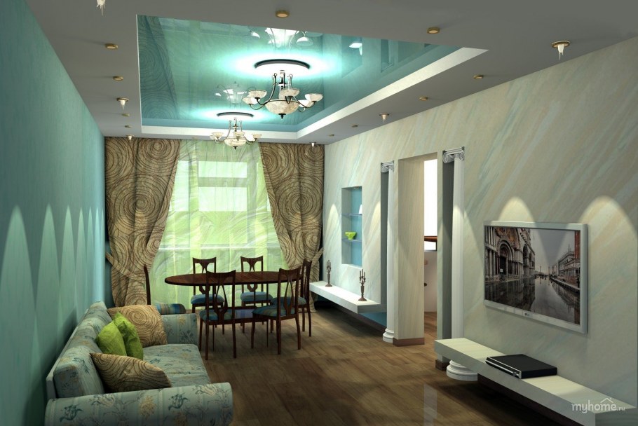 Цветные натяжные потолки в интерьере в современном стиле (48 фото)