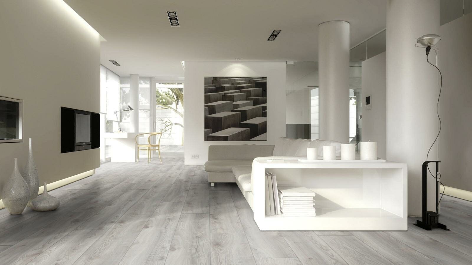 Белый ламинат в гостиной