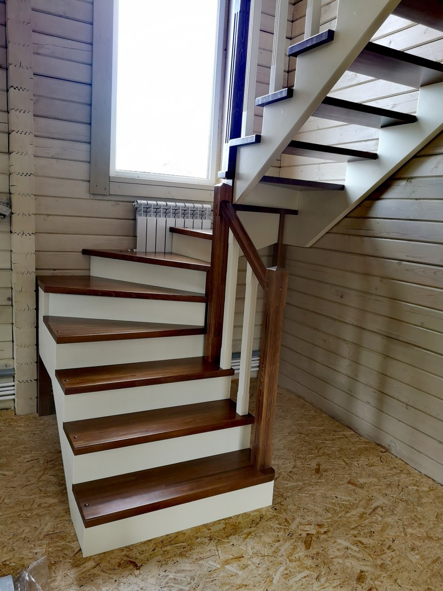 Лестница на второй этаж из бруса 100х150