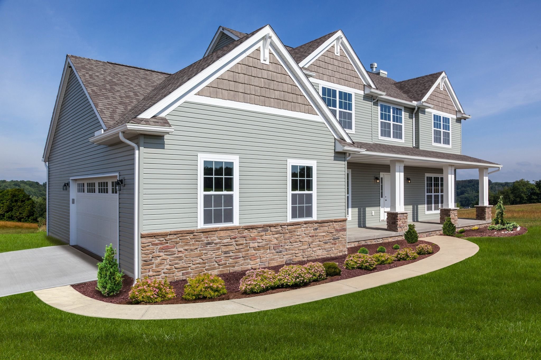 Зеленая крыша серый сайдинг