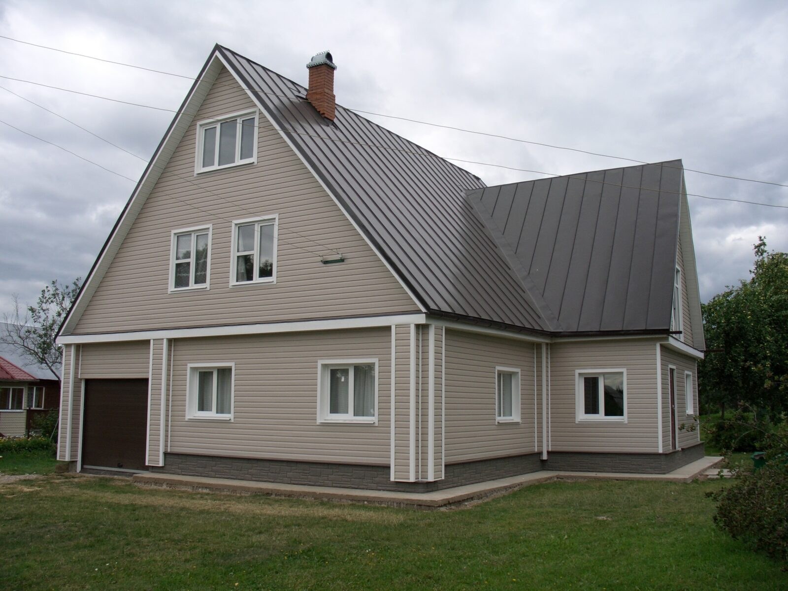 Загородный дом с коричневой крышей