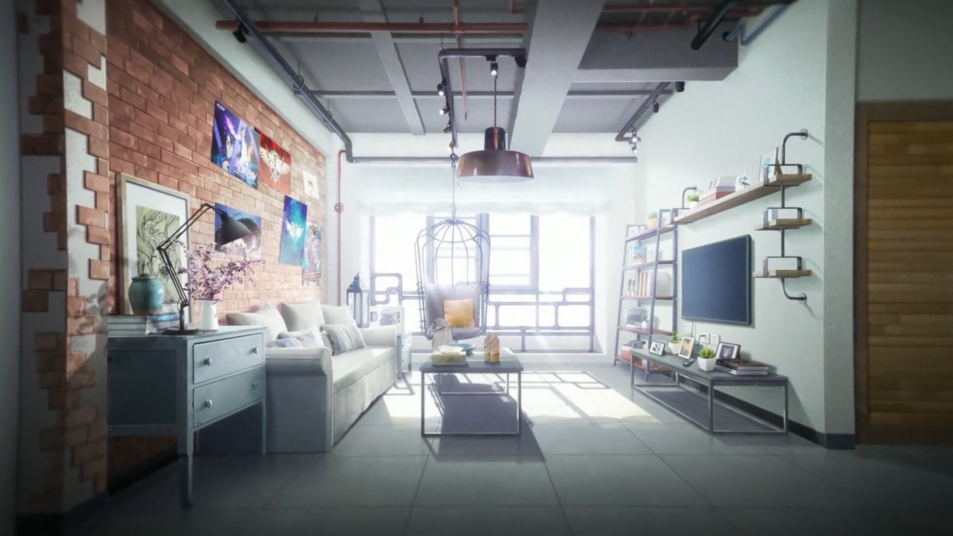 Аниме комната с телевизором