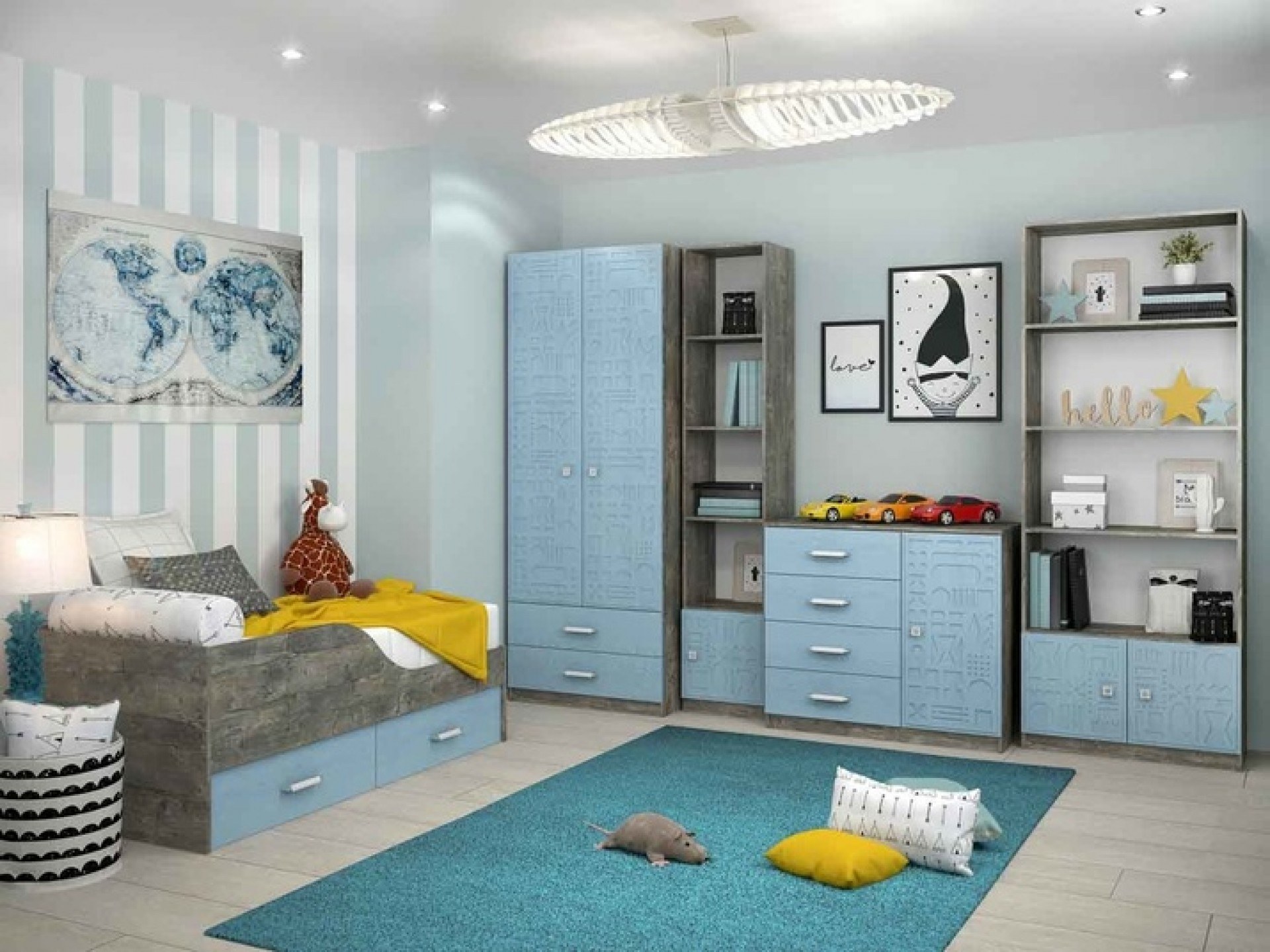 Комната в синих тонах для подростка