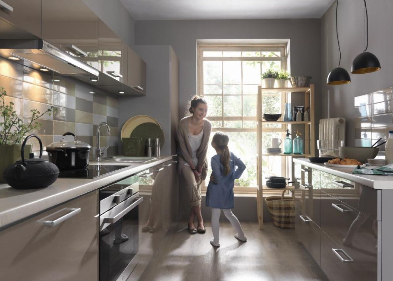Семья на красивой кухне