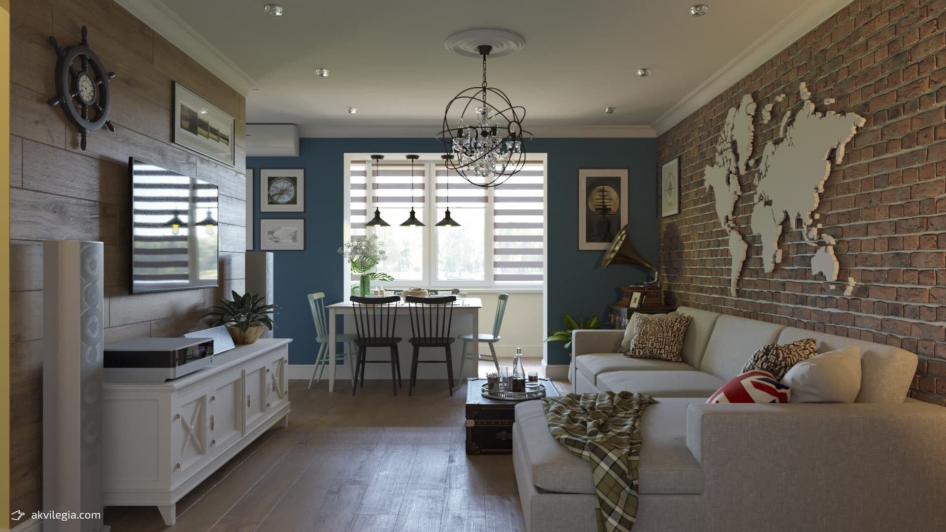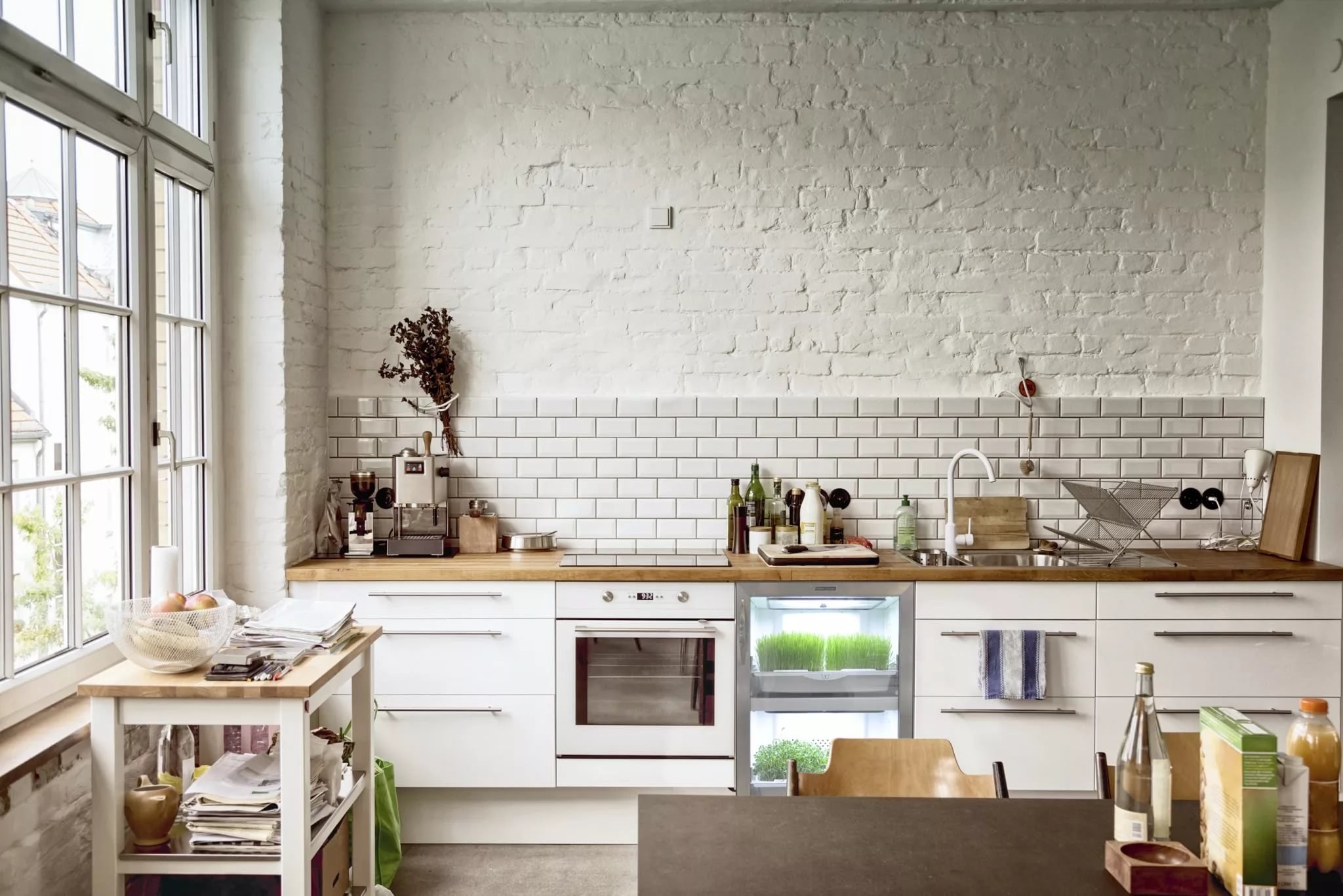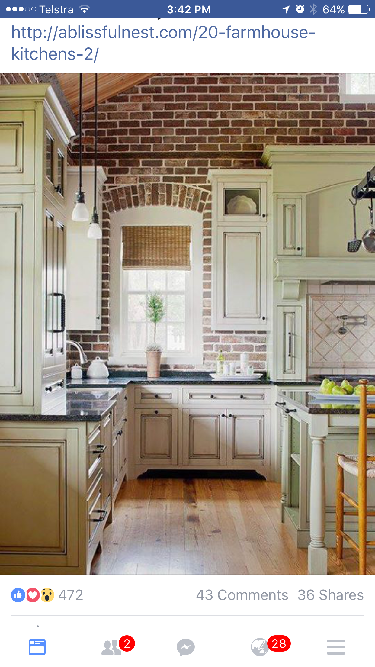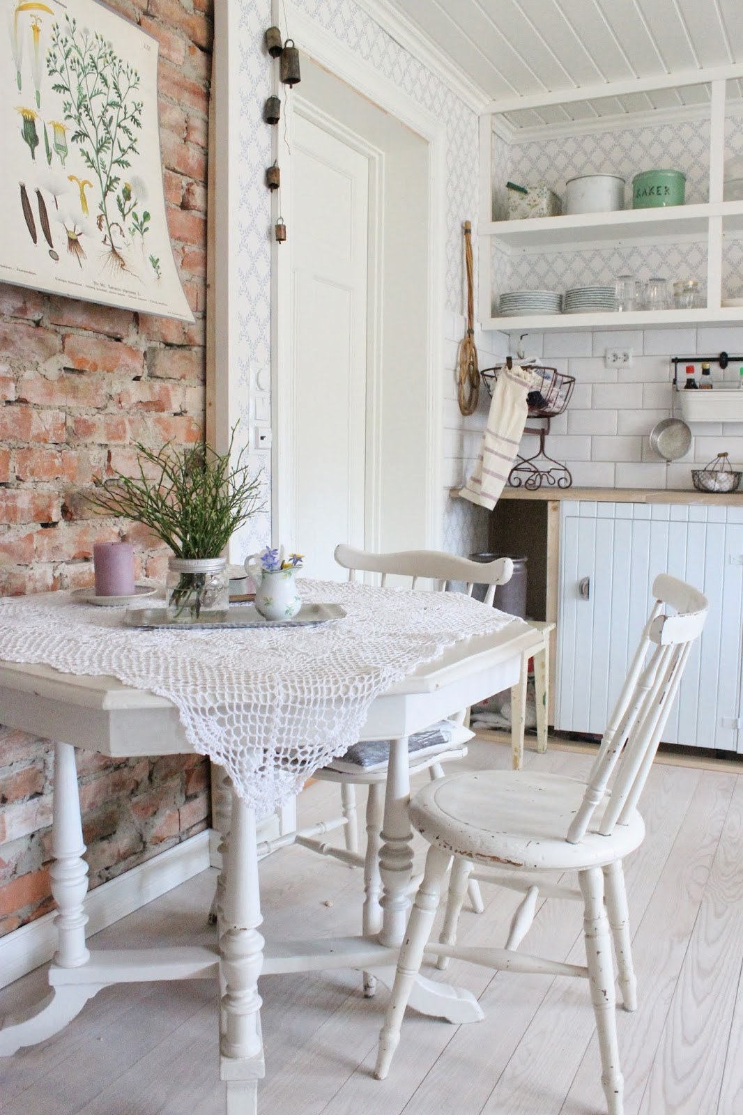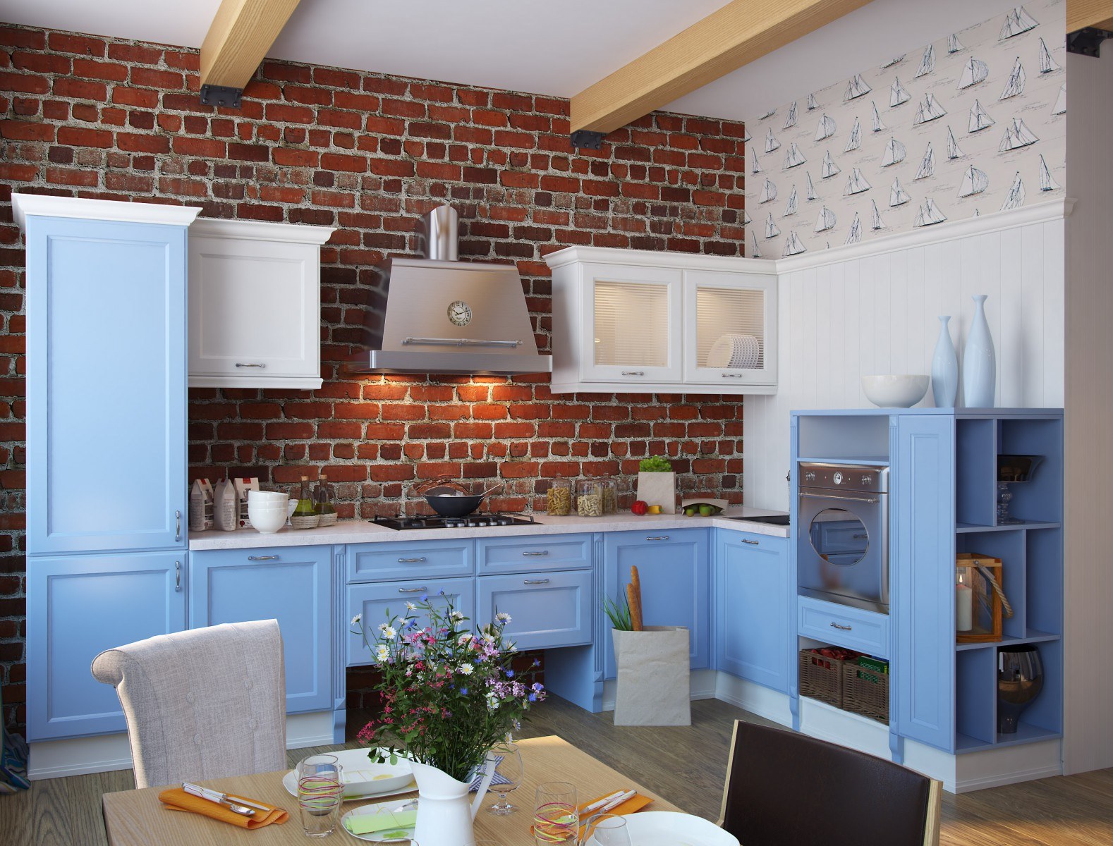 Кирпичная стена на кухне в стиле прованс (44 фото)