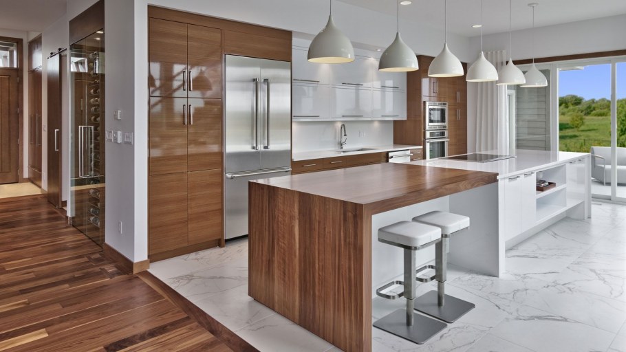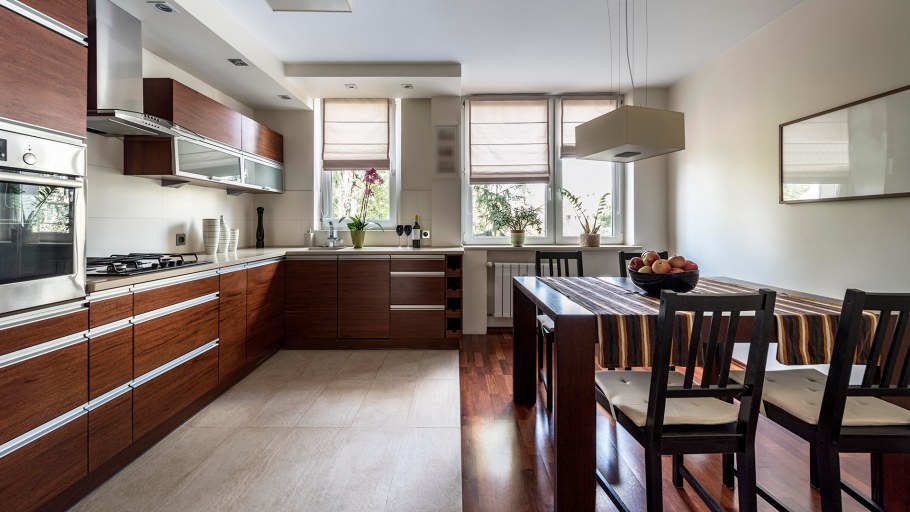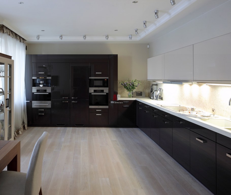 Сочетание плитки и ламината на кухне модный интерьер дизайн (48 фото)