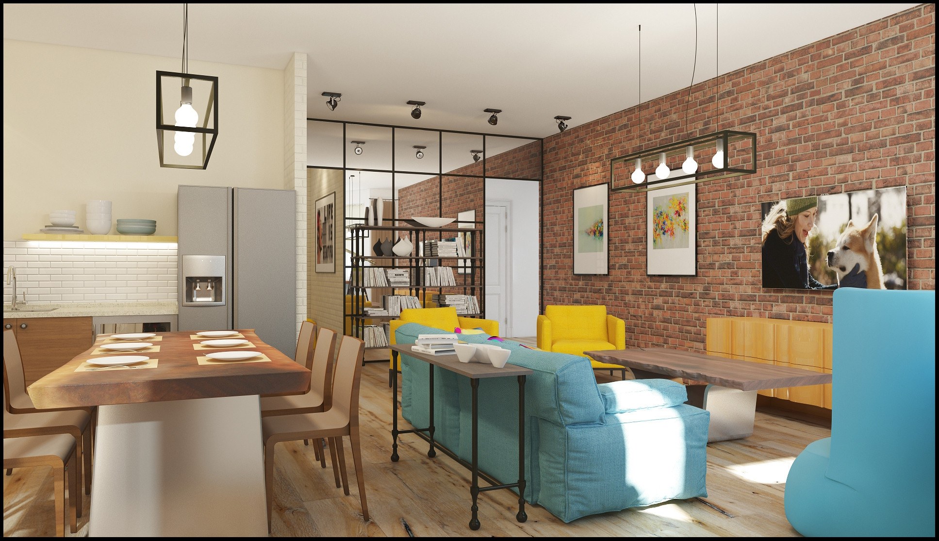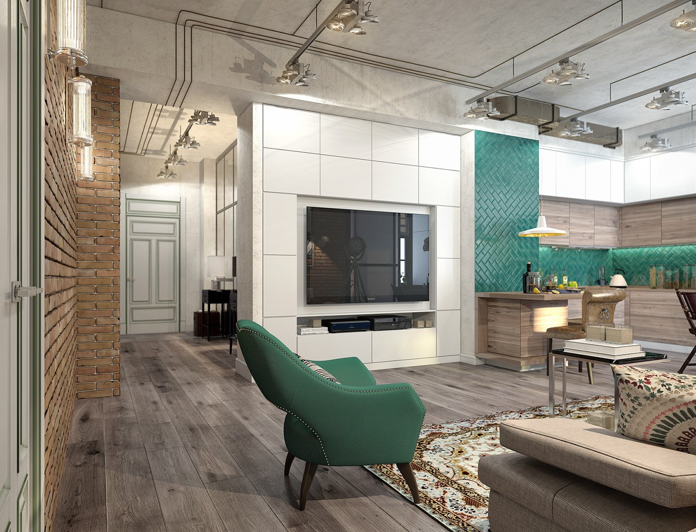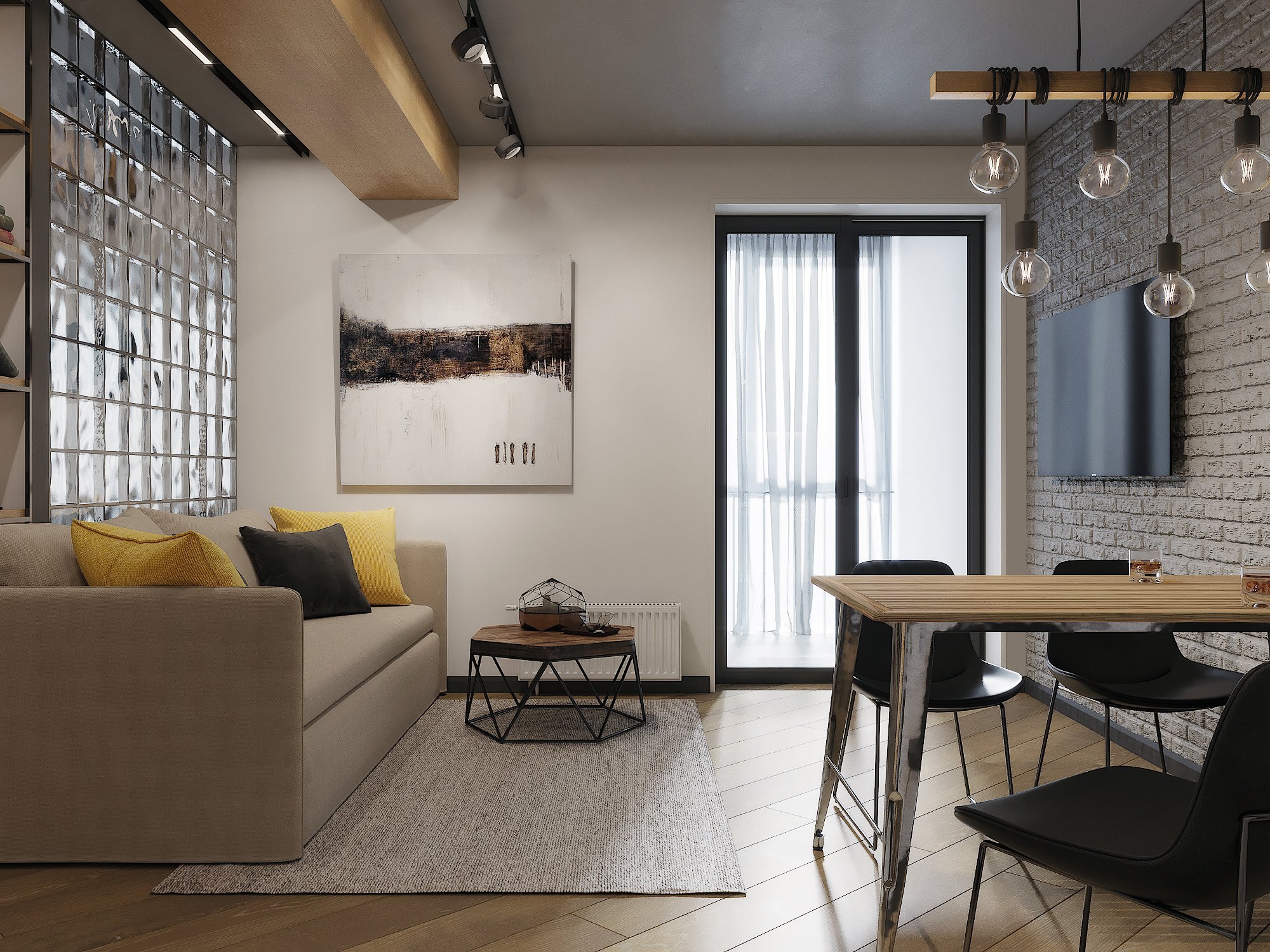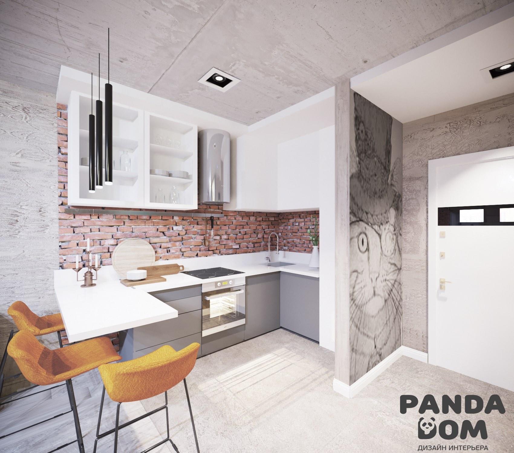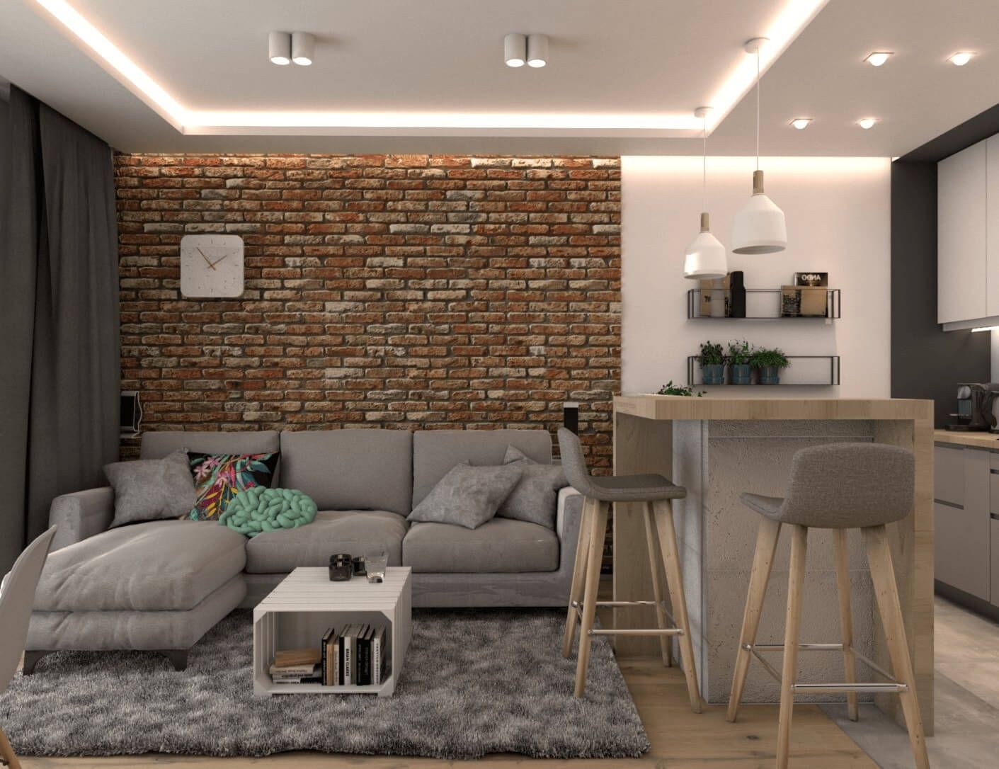 Кухня гостиная в стиле лофт светлая (47 фото)